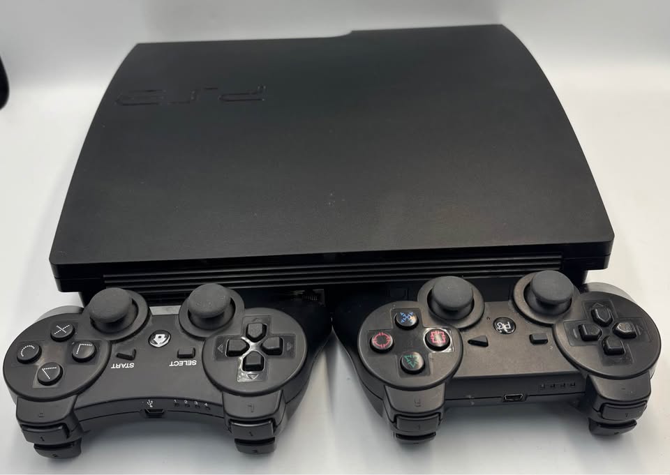 PlayStation 3 slim console 120GB plus 2 controllers and power cables black unboxed