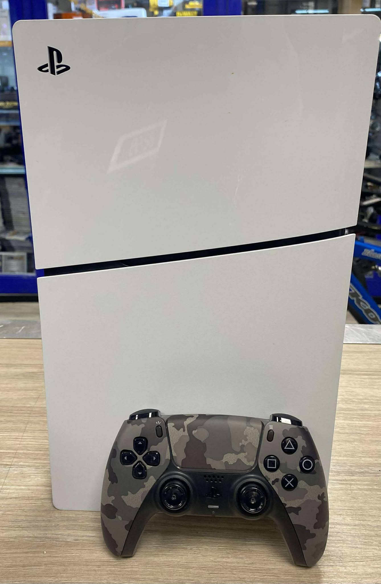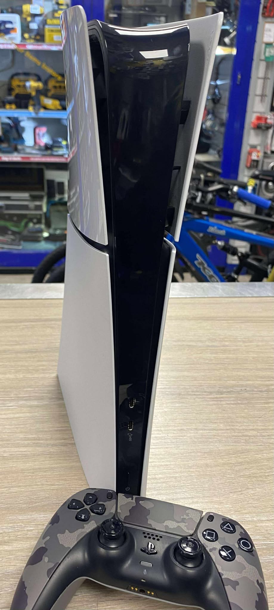 PlayStation 5 Slim Digital - 825GB Comes with controller and power lead. Controller - rubber thumbstick caps are missing. Some cosmetic scratches on the surface of console as it is seen in photos. Doesn't include box. Good working condition.