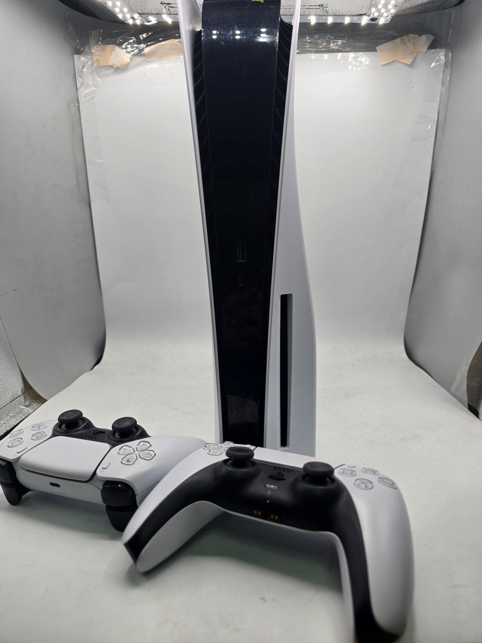 Play has no limits with the PlayStation 5 Console. The PS5 console unleashes new gaming possibilities that you never anticipated. Experience lightning fast loading with an ultra-high speed SSD, deeper immersion with support for haptic feedback, adaptive triggers, and 3D Audio, and an all-new generation of incredible PlayStation games. Harness the power of a custom CPU, GPU, and SSD with Integrated I/O that rewrite the rules of what a PlayStation console can do. Marvel at incredible graphics and experience new PS5 features. Discover a deeper gaming experience with support for haptic feedback, adaptive triggers, and 3D Audio technology. Maximize your play sessions with near-instant load times for PS5 games. And the custom integration of the PS5 console's systems lets creators pull data from the SSD so quickly that they can design games in ways never before possible. Play has no limits with the PlayStation 5 Console. unboxed, good condition, 2 controllers