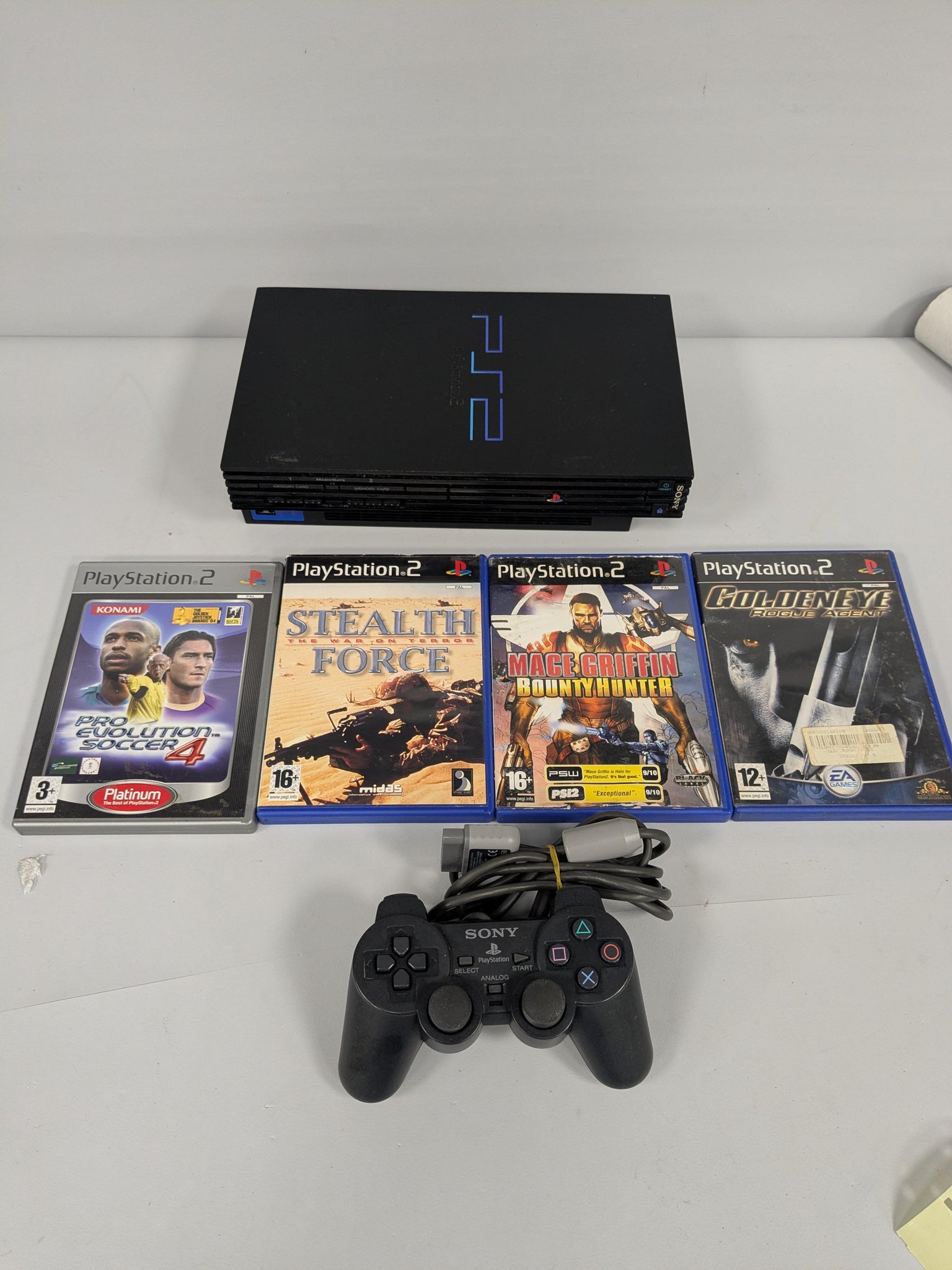 In good condition with leads, controller & games shown. Fully working reading discs but drawer closes by itself