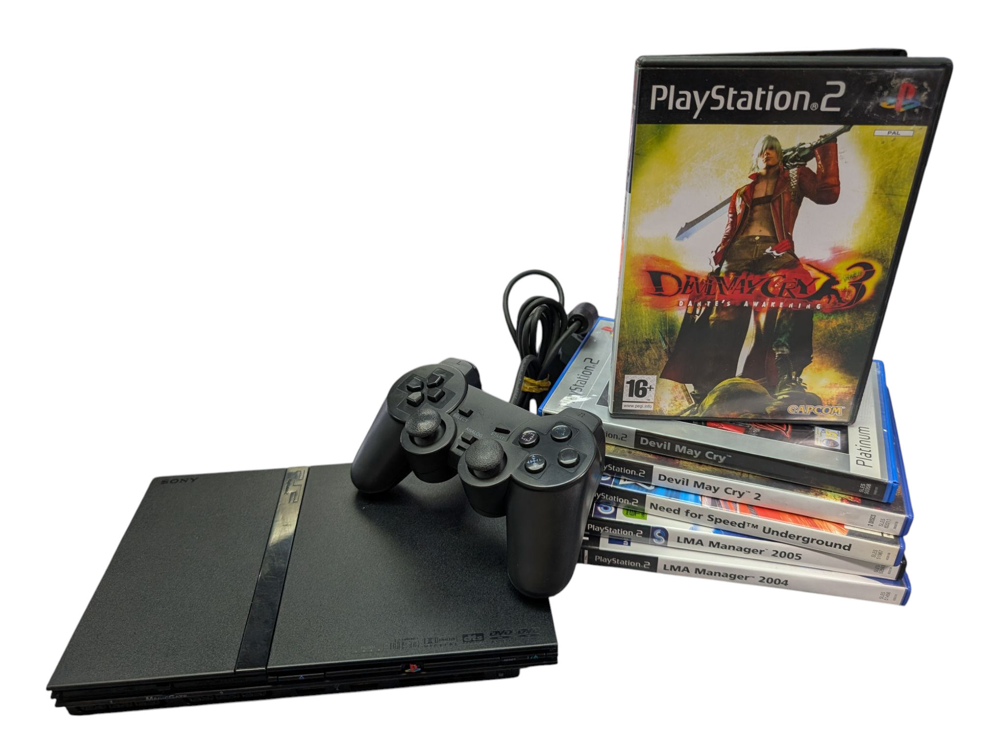 HERE WE HAVE A SONY PS2 SLIM GAMES CONSOLE WITH 6 GAMES AND ONE THIRD PARTY CONTROLLER UNBOXED. **** IT IS IN GOOD CONDITION AND COMES WITH 6 GAMES. ***** FOR ANY QUERIES PLEASE CALL OUR PRESTON STORE DIRECT MON-SAT 01772 204889.