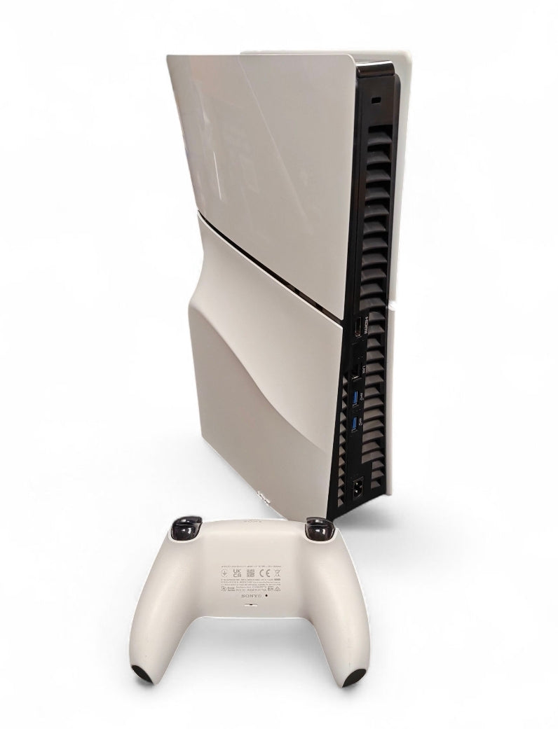 Same immersive power. New slimmer size, the PlayStation 5 Console unleashes new gaming possibilities that you never anticipated. Experience lightning-fast loading with an ultra-high speed SSD, deeper immersion with support for haptic feedback, adaptive triggers, and 3D Audio, and an all-new generation of incredible PlayStation games. PS5 console 3D audio via built-in TV speakers or analogue/USB stereo headphones. Set up and latest system software update required. Slim Design - With PS5 console, players get powerful gaming technology packed inside a sleek and compact console design. 1TB of Storage - Keep your favourite games ready and waiting for you to jump in and play with 1TB of SSD storage built in. Ultra-High Speed SSD - Maximise your play sessions with near instant load times for installed PS5 games. Integrated I/O - The custom integration of the PS5 console's systems lets creators pull data from the SSD so quickly that they can design games in ways never before possible. Ray Tracing - Immerse yourself in worlds with a new level of realism as rays of light are individually simulated, creating true-to-life shadows and reflections in supported PS5 games. 4K-TV Gaming - Play your favourite PS5 games on your stunning 4K TV. Up to 120fps with 120Hz output - Enjoy smooth and fluid high frame rate gameplay at up to 120fps for compatible games, with support for 120Hz output on 4K displays. HDR Technology - With an HDR TV, supported PS5 games display an unbelievably vibrant and lifelike range of colours. Tempest 3D AudioTech - Immerse yourself in soundscapes where it feels as if the sound comes from every direction. Your surroundings truly come alive with Tempest 3D AudioTech in supported games.