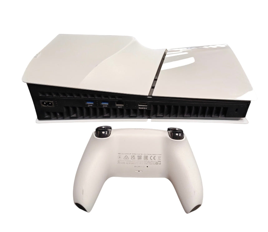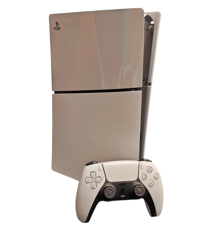 The PlayStation 5 Slim Disc Edition is the standard model in the redesigned PS5 lineup, featuring a removable Ultra HD Blu-ray disc drive. It offers the same core performance as the original PS5 but in a significantly more compact form factor—approximately 30% smaller and up to 24% lighter. Storage: Comes with a 1 TB SSD, providing more internal space than the original 825 GB model. Performance: Supports 4K gaming at up to 120 fps, with features like Ray Tracing and HDR technology. Media: The built-in disc drive allows for playing physical game discs and watching 4K Blu-ray movies. Connectivity: Features two USB-C ports on the front, compared to one USB-C and one USB-A on the original model.