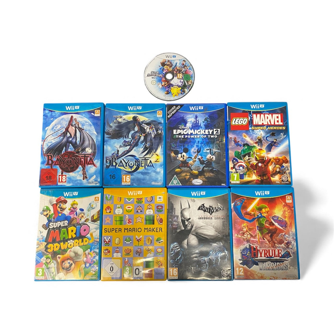 Wii U is a home videogame console from Nintendo that’s brimming with games and experiences you can enjoy alone or with friends and family. It comes with a unique controller that redefines the dynamic of playing games together: the Wii U GamePad. Wii U is a home videogame console from Nintendo that’s brimming with games and experiences you can enjoy alone or with friends and family. It comes with a unique controller that redefines the dynamic of playing games together: the Wii U GamePad. Wii U is backwards compatible with almost all Wii games and accessories, so you'll be able to continue enjoying your favourite Wii experiences on Wii U. Connecting Wii U to the Internet opens up a vast world of content for you to enjoy – including free demos! Enhance your Wii U experience with a wide range of accessories (sold separately). Wii U is also compatible with many peripherals designed for the Wii console. Discover great games you may have missed the first time around with the Nintendo Selects range – a series of top-notch software that offers lots of different experiences! Includes 3 x extra controllers, 8 x fully boxed games; Bayonetta, Bayonetta 2, Super Mario Maker, Batman Arkham City, Hyrule Warriors, Epic Mickey 2, Lego Marvel Super Heroes & Super Mario 3D World and the loose game Super Smash Bros.