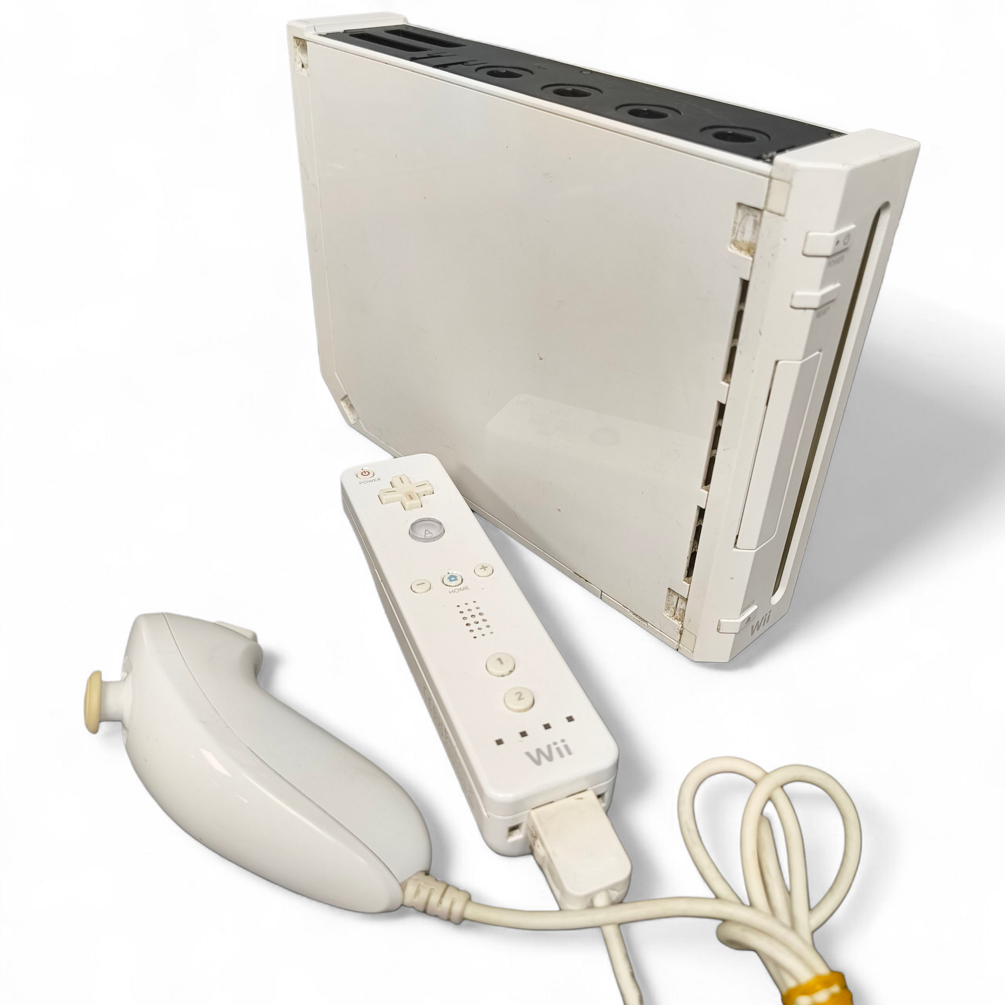 Good working order. Comes unboxed with all leads, wii-mote & nunchuck & 9 games. Some signs of wear and tear to console, including missing Gamecube flaps. ***See Images***
