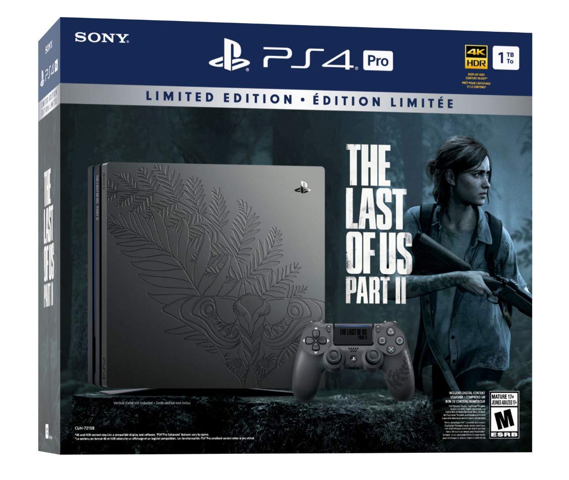The Last of Us Part 2 Limited Edition PS4 Pro Console Get ready to immerse yourself in the post-apocalyptic world of The Last of Us Part 2 with this stunning limited edition PS4 Pro console. This custom-designed console features a sleek matte finish with Ellie's iconic tattoo engraved on it, making it a must-have for fans and collectors. What's in the Box: - Custom-designed PS4 Pro console with Ellie's tattoo engraving - Limited Edition DualShock 4 Wireless Controller with Ellie's tattoo and The Last of Us Part 2 logo Key Features: - 1TB storage capacity - 4K resolution support