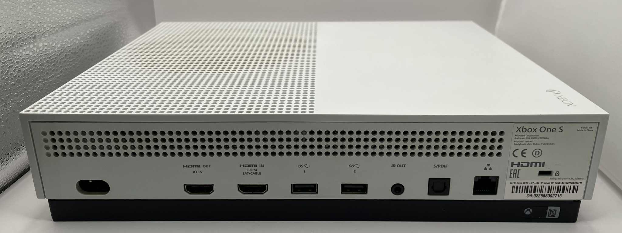Xbox one S - 500GB Model: 1681 Comes with the power lead Doesn't come with the controller Cosmetic scratches on the back of console as it is seen in photo Good working condition
