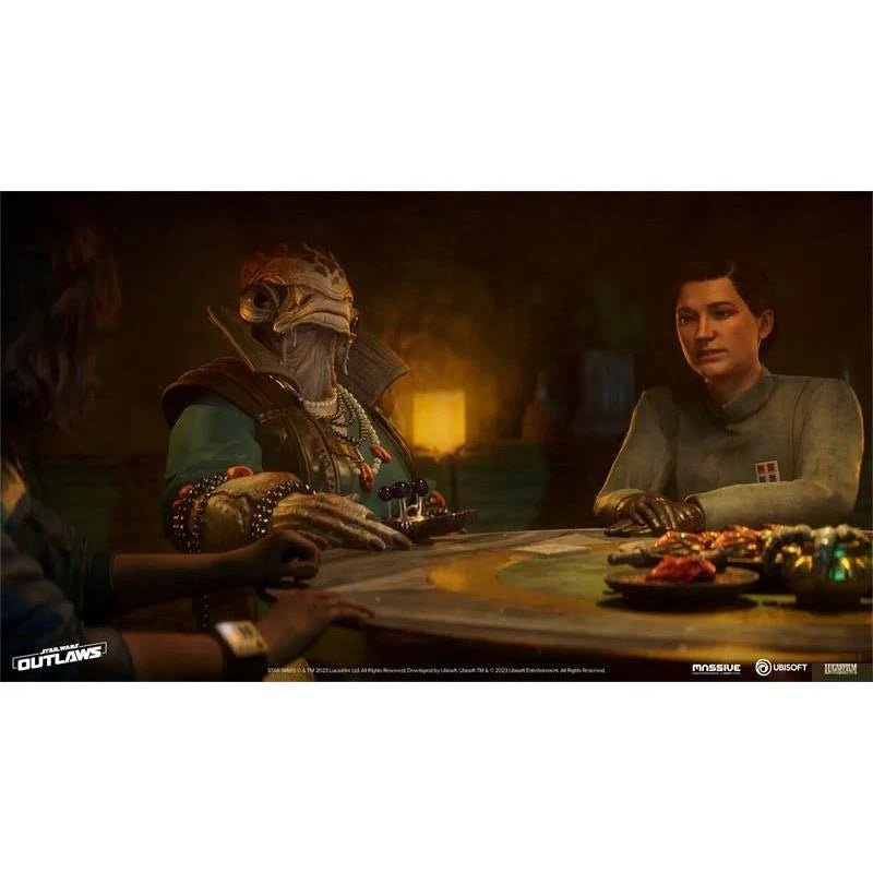 Embark on a thrilling journey with Star Wars Outlaws on PlayStation 5. This epic saga unfolds in a galaxy filled with possibilities, where every corner of the universe brims with adventure and intrigue. As you navigate through bustling cities and remote cantinas on distant planets, the richly detailed environments of the PlayStation 5 version immerse you in the Star Wars universe like never before. Experience the life of an outlaw in Star Wars Outlaws, where every decision shapes your path through the cosmos. With your trusty companion Nix, turn the tide in your favor using stealth, cunning, and a well-timed blaster shot. The PlayStation 5's advanced features bring every moment of your scoundrel story to life with stunning visual fidelity and immersive gameplay. Explore dynamic, ever-changing worlds and face new challenges in every location. Engage in high-stakes missions, stealing and outsmarting the galaxy's most formidable foes. Pilot the Trailblazer through intense space battles, utilizing the PlayStation 5's enhanced controls to navigate and dominate. In Star Wars Outlaws for the PlayStation 5, every choice carves your path in the stars, affecting your reputation and standing within the galaxy's criminal underworld. Prepare to chart your course, make alliances, and live the exhilarating life of an outlaw in a universe where opportunity and danger go hand in hand!