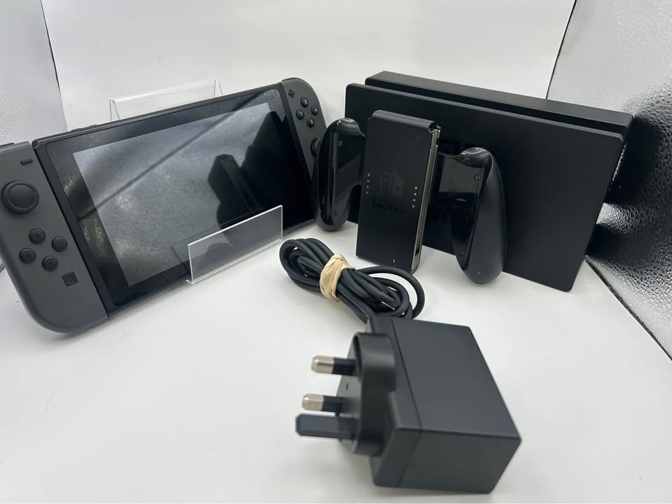 Product Details Specifications Condition: Discounted Console Colour: Grey Manufacturer: Nintendo Model Name: Switch (HAC-001-01) Main Colour: Grey Storage: 32GB Edition: Standard Edition Accessory Colour: Grey Number of Controllers: 2 Product Description Console comes with a dock Play your way with the Nintendo Switch gaming system. Whether you're at home or on the go, solo or with friends, the Nintendo Switch system is designed to fit your life. Dock your Nintendo Switch to enjoy HD gaming on your TV. Heading out? Just undock your console and keep playing in handheld mode. Get the gaming system that lets you play the games you want, wherever you are, however you like. Includes the Nintendo Switch console and Nintendo Switch dock in black, and left and right Joy Con controllers in a contrasting gray. Introducing Nintendo Switch, the home video game system from Nintendo. In addition to providing single and multiplayer thrills at home, the Nintendo Switch system can be taken on the go so players can enjoy a full home console experience anytime, anywhere. The mobility of a handheld is now added to the power of a home gaming system, with unprecedented play styles brought to life by the two Joy-Con controllers. Home Gaming System At home the main unit rests in the Nintendo Switch dock, which connects the system to the TV and lets you play with family and friends in the comfort of your living room. On-the-Go Lift Nintendo Switch from the dock and instantly transition to handheld mode for on-the-go gaming. By sharing Joy-Con, players can go head-to-head while away from home. You can also enjoy the same great games in tabletop mode by using the included stand to prop the system up.