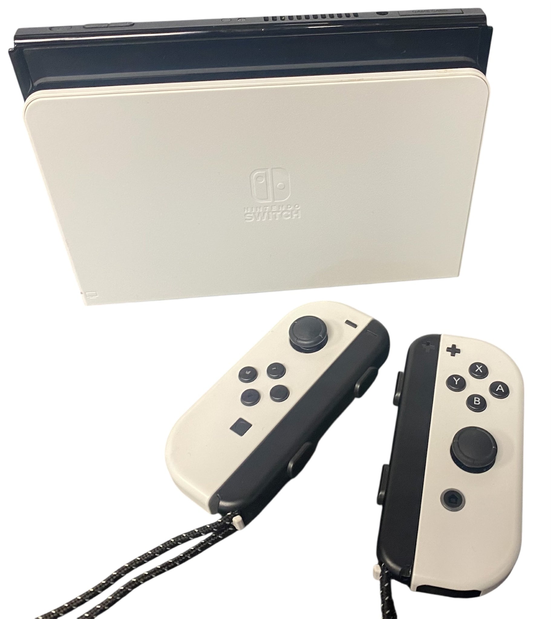 Introducing the Nintendo Switch Console OLED White, the latest addition to the Nintendo Switch family, offering an elevated gaming experience. Experience your favorite games in vibrant detail with the dazzling 7-inch OLED screen, showcasing richer colors and deeper blacks for a truly immersive visual experience. The wider adjustable stand allows for flexible viewing angles, making it perfect for sharing the action with friends or family. Stay connected and enjoy seamless online gaming with the included dock featuring a wired LAN port, guaranteeing a stable and reliable internet connection. The Nintendo Switch OLED White comes with 64 GB of internal storage, giving you ample space to store your favorite games and digital content. The enhanced audio features deliver crystal-clear sound, enhancing the immersive experience and adding a new dimension to your favorite titles. Unleash your gaming spirit and explore a vast library of games anytime, anywhere. The Nintendo Switch's versatility shines through its hybrid design, effortlessly transitioning from a handheld console to a home console, giving you the freedom to play in any environment. Embrace the portability of the Nintendo Switch and continue your gaming adventure on the go, or enjoy the immersive big-screen experience on your TV at home.