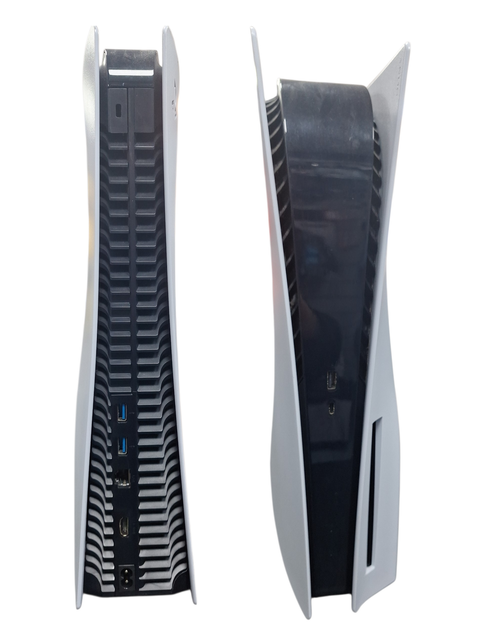 Based on the product description, this is likely a pre-owned or refurbished Sony PlayStation 5 (Original or Slim) Digital Edition or Disc Edition with 825GB storage, sold "unboxed" (meaning no original packaging), including the essential accessories. Here are the specifications for the console and the official DualSense controller: PlayStation 5 Console Specs (825GB Model) Storage: 825GB Custom SSD (approx. 667GB available to the user). Performance: CPU: x86-64-AMD Ryzen “Zen 2” (8 Cores / 16 Threads, up to 3.5 GHz). GPU: AMD Radeon RDNA 2-based graphics engine, 10.3 TFLOPS, Ray Tracing Acceleration. RAM: 16GB GDDR6. Visuals: Supports 4K TV Gaming (up to 120fps with 120Hz output), HDR technology, 8K support. Audio: Tempest 3D AudioTech. Dimensions (Original): Approx. 390mm x 104mm x 260mm (Width x Height x Depth). Weight (Original): ~4.5kg (Disc), ~3.9kg (Digital). Connectivity: Wi-Fi 6, Bluetooth 5.1, Ethernet. Ports: USB-C (Front), USB-A (Front), 2x USB-A (Rear), HDMI 2.1. Included Accessories ("All Leads") Official DualSense Wireless Controller: Features haptic feedback, adaptive triggers, built-in microphone, and motion controls. HDMI Cable: High-speed cable for 4K/120Hz output. AC Power Cord: Standard power lead. USB Charging Cable: For charging the controller. Base/Stand: Usually included to hold the console horizontally or vertically. Key Features Ultra-High Speed SSD: Near-instant load times. Backward Compatibility: Plays the majority of PS4 games. Haptic Feedback & Adaptive Triggers: Immersive, realistic controller feedback.
