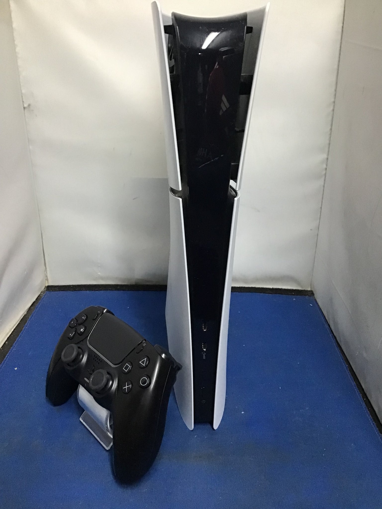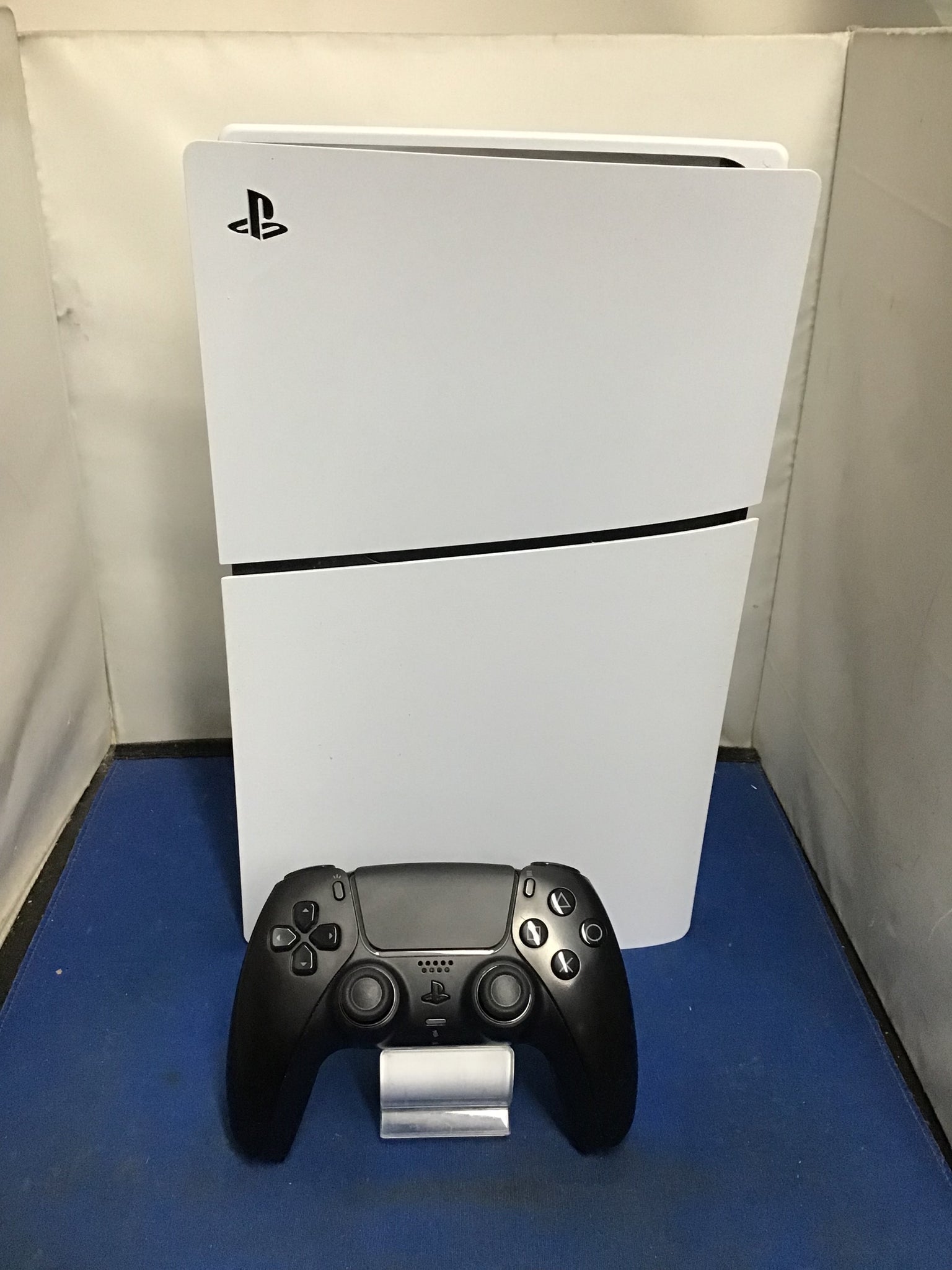 We have a PlayStation 5 Digital slim 1TB. Console has been checked and tested. Comes with controller and power cables