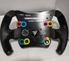 Compact size (11 inches / 28 cm in diameter) and lightweight design for enhanced feel of Force Feedback. Two responsive sequential paddle shifters, mounted on the wheel, six action buttons, one D-pad and one rotary selector switch. Sturdy faceplate crafted of brushed black aluminum and suede wheel grips. Shape and hand positioning perfectly adapted for car racing competitions. Compatible with a wide variety of platforms within the Thrustmaster ecosystem.