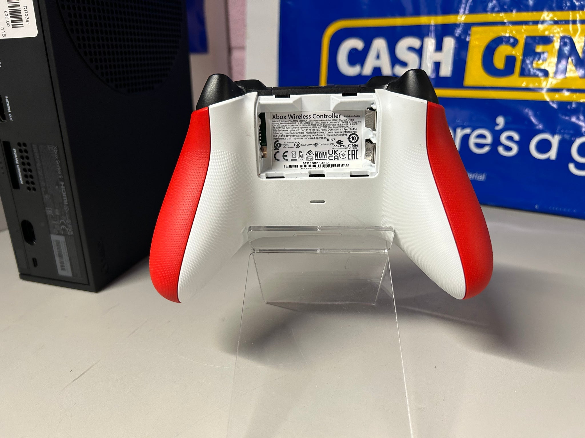 Xbox Series X console in a sleek black with 1TB SSD. comes unboxed in perfect working order with a red and white series Controller. comes with power and HDMI cables.