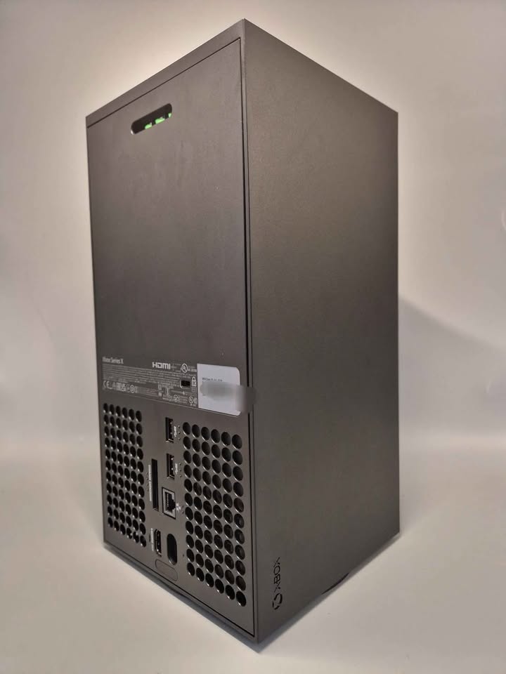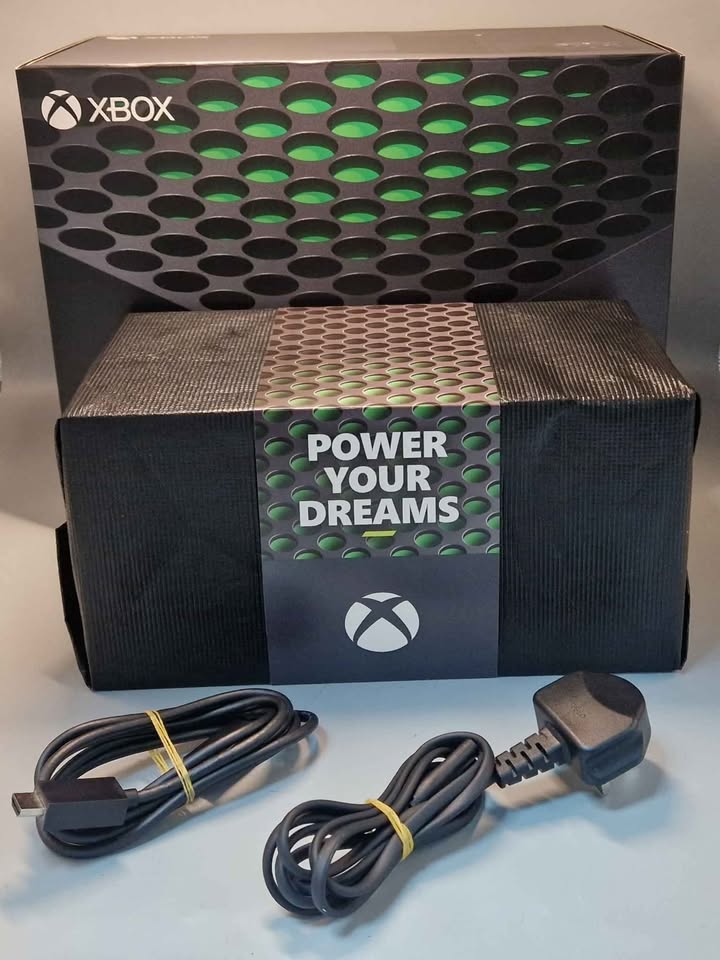 Xbox Series X Console, 1TB, Black, Boxed perfect working condition, excellent physical condition, couple of scuffs on surface only noticeable in the correct light Product Description Optimised for Series X Games built with the Xbox Series X development kit showcase significantly reduced load times and stunning visuals at up to 120 FPS. Game on From future adventures, to current obsessions, to classic titles, thousands of favourites across four generations of Xbox look and play Xbox Series X. 12 Tflops of Power The 12 teraflops of processing power housed in the system on a chip (SOC) work with AMD's Zen 2 and RDNA 2 architectures to result and demand a closer look. Looks Better. Plays Better Equipped with AMD's Zen 2 and RDNA 2 architectures, DirectX ray tracing delivers true-to-life lighting, shadows and accurate reflections to create dynamic, living. Listen, You'Re Being Surrounded 3D Spatial Audio is the next evolution in audio technology, using advanced algorithms to create immersive lifelike worlds that put you at the centre of your experience. True 4K gaming The Xbox Series X delivers sensationally smooth frame rates of up to 120FPS with the visual pop of HDR. Immerse yourself with sharper characters, bright worlds and impossible details with true-to-life 4K. GO, GO, GO Sip quick. Games load significantly fast with the custom SSD in the Xbox Series X. Change the game. With Quick Resume, you can seamlessly switch between multiple different titles and resume instantly from where you left off. Fine Tuned Performance The Xbox Wireless Controller brings elegant design, refined comfort and instant sharing to a familiar favourite. Get A Grip Textured triggers and bumpers hold tight to keep you from slipping. You Win Show off. Tap the share button to eternalise your conquest. Full Circle Updated in every direction. The hybrid D-pad lets you crush combos without crossing fingers. Designed From The Inside Out The sleek monolithic design of Xbox Series X is the result of combining hardware and software innovations with intentional engineering to achieve the zenith of speed and performance. Air-Flow Channels The Xbox Parallel Cooling Architecture is built with three air flow channels that evenly distribute the temperatures generated by the advanced internal components, keeping the console cool and quiet. Split Motherboard A split motherboard keeps the console’s internals evenly temperature controlled allowing for an even high output of power. Heat-Sink A heat-sink chassis is a different, non-electronic component that merges parallel cooling with design to increase the reliability of performance. Vapour Chamber The vapour chamber in the Xbox Series X enables an even spread of temperatures within the core. Whisper-Quiet Fan A vertical airflow system keeps the console running smoothly and cooling quietly. Technical Details: Processor 8X Cores @ 3.8 GHz (3.66 GHz w/SMT) Custom Zen 2 CPU 12 TFLOPS, 52 CUs @1.825 GHz Custom RDNA 2 GPU 360.45 mm SOC Die Size 7nm Enhanced Processor Memory & Storage 16GB GDDR6 w/320 bit-wide bus 10 GB @ 560 GB/s, 6 GB @ 336 GB/s 2.4 GB/s (Raw), 4.8 GB/s (Compressed, with custom hardware decompression block) I/O Throughput Support for 1TB Seagate Expansion Card for Xbox Series X matches internal storage exactly (sold separately) Support for USB 3.1 external HDD (sold separately) Video Capabilities True 4K Gaming Resolution Up to 8K HDR High Dynamic Range 4K UHD Blu-Ray Optical Drive Up to 120 FPS Performance Target Auto Low Latency Mode. HDMI Variable Refresh Rate. AMD FreeSync. Sound Capabilities Dolby Digital 5.1 DTS 5.1 Dolby TrueHD with Atmos Up to 7.1 L-PCM Ports & Connectivity 1x HDMI 2.1 port 3x USB 3.1 Gen 1 ports 802.11ac dual band wireless 802.3 10/100/1000 ethernet Dedicated dual band Xbox Wireless radio Weight & Dimension 151 x 151 x 301 mm 4.44 kg
