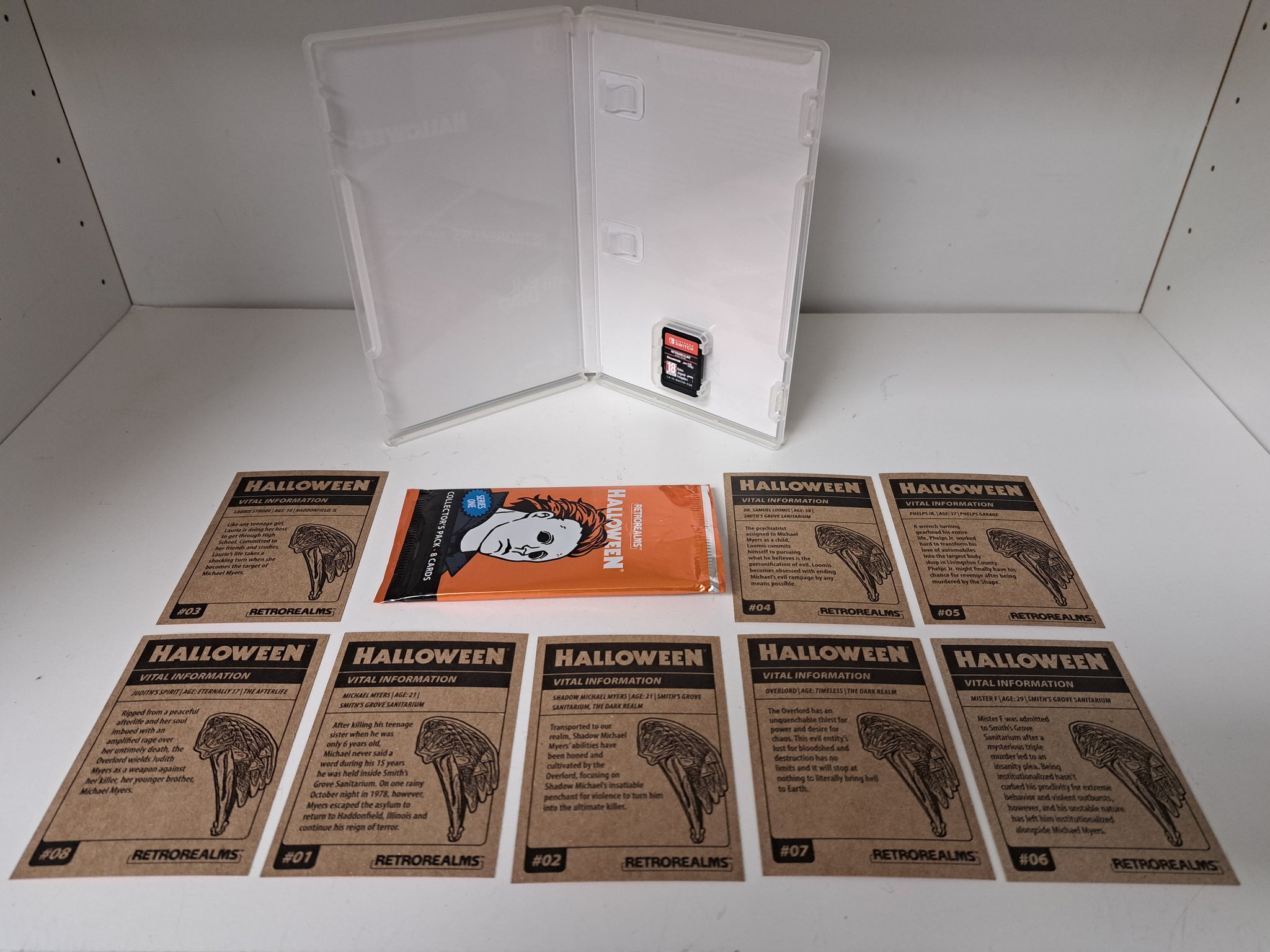 The initial physical run will include one pack of eight official collectible RetroRealms trading cards! Enter the RetroRealms and take control of horror icons in two separate games in one package filled with over-the-top arcade action! Step into a 16-bit pixel art world filled with gory good fun as horror legends Michael Myers and Ash Williams! Slice and shoot your way across multiple levels of terrifying platformer action filled with familiar sights and sounds from both the original “Halloween” film and the STARZ television series “Ash vs Evil Dead”! Test your skill, use your weapons, and confront twisted and fiendish versions of iconic characters in two separate games in one Double Pack that can be connected for even more fun. Engage in epic, heart-pounding encounters to overcome the ultimate evil in this sprawling adventure filled with over-the-top terror!