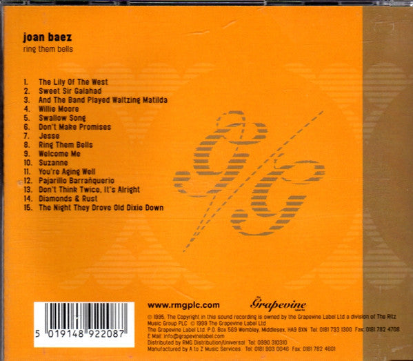 1 The Lily Of The West 2 Sweet Sir Galahad 3 And The Band Played Waltzing Matilda 4 Willie Moore 5 Swallow Song 6 Don't Make Promises 7 Jesse 8 Ring Them Bells 9 Welcome Me 10 Suzanne 11 You're Aging Well 12 Pajarillo Barranqueno 13 Don't Think Twice, It's Alright 14 Diamonds & Rust 15 The Night They Drove Old Dixie Down