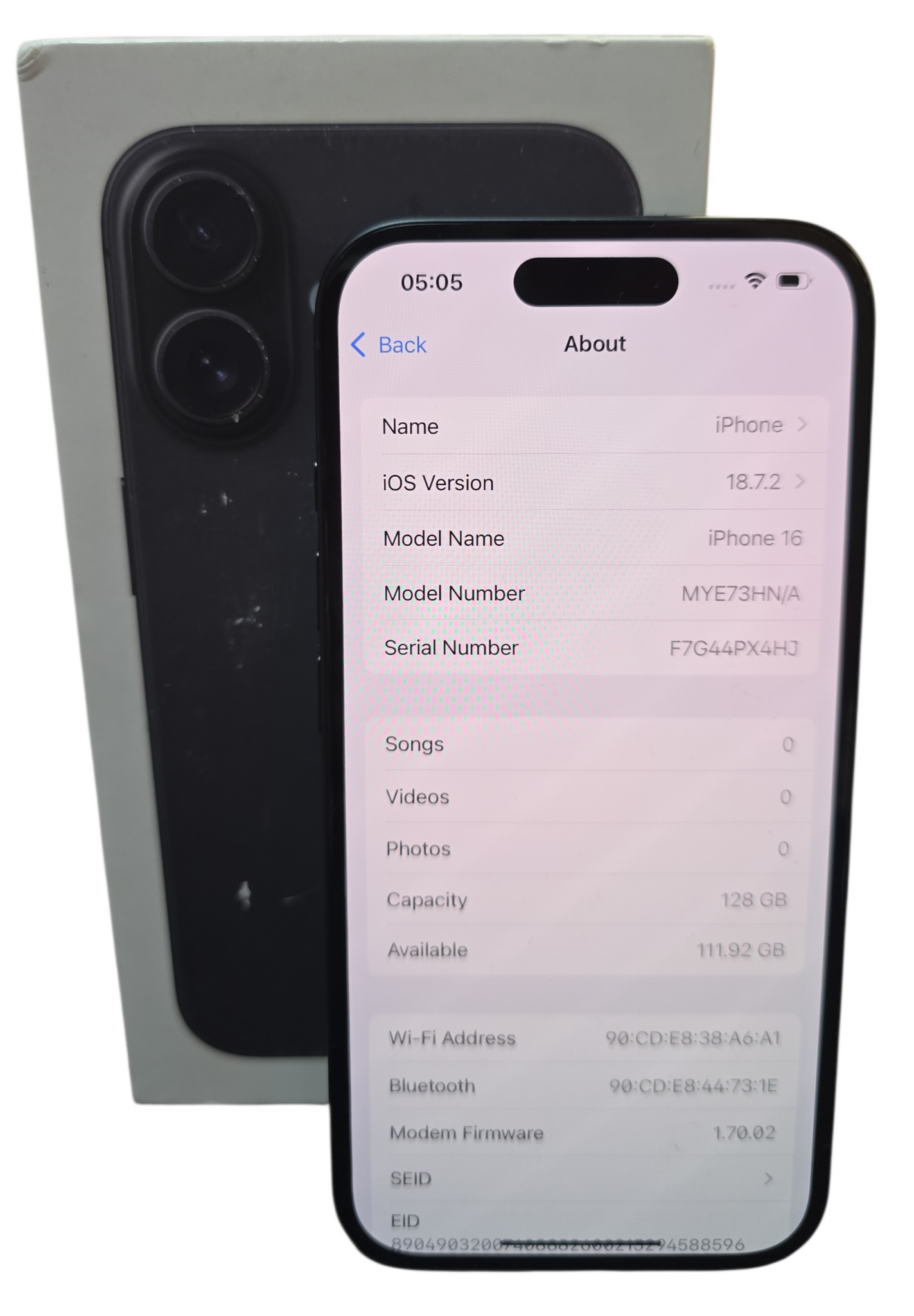 The iPhone 16 features a 6.1-inch Super Retina XDR display, the A18 chip, a dual-camera system with a 48MP main lens, and multiple storage options up to 512GB. It has a new Action button and Capture button, 8GB of RAM, and support for MagSafe and USB-C fast charging. The battery provides up to 22 hours of video playback, and the phone is IP68 water and dust resistant.