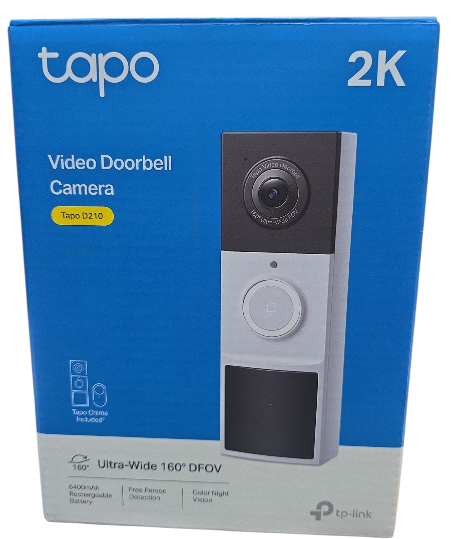 TPLink Tapo D210 Video Doorbell With 2K Resolution & Chime Introducing the Tapo Video Doorbell Camera your ultimate gateway to home security With free human and vehicle detection rest assured that every visitor is detected and recognized ensuring your peace of mind. Experience crystalclear 2K 3MP color night vision providing unparalleled visibility even in the darkest of nights. Engage in seamless twoway audio communication allowing you to interact with visitors from anywhere. Built to withstand the elements this camera boasts IP65 water and dust resistance ensuring reliable performance in any weather condition. Plus enjoy quick response times for instant alerts and notifications. With its headtotoe view feature never miss a moment even if visitors stand too close to the doorbell. Thanks to its 160degree ultrawide diagonal field of view get a comprehensive view of your surroundings for enhanced security. Upgrade to the Tapo Video Doorbell Camera and take your home security to the next level Tech Specs Depth 38.43 MM Height 150 MM Width 50 MM Always know what happens in front of your door through the Tapo app. Starlight sensor and 2K 3MP resolution. FullColor Night Vision at night with embedded floodlight. Receive headtotoe views even when visitors stand very close to your doorbell with a 160 ultrawide diagonal FOV With twoway audio or a recorded quick response communicate directly with your through the Tapo app. Save video footage on your microSD card (up to 512 GB ) or by using Tapo Care** cloud storage services. AI detection to quickly identify people and vehicles.