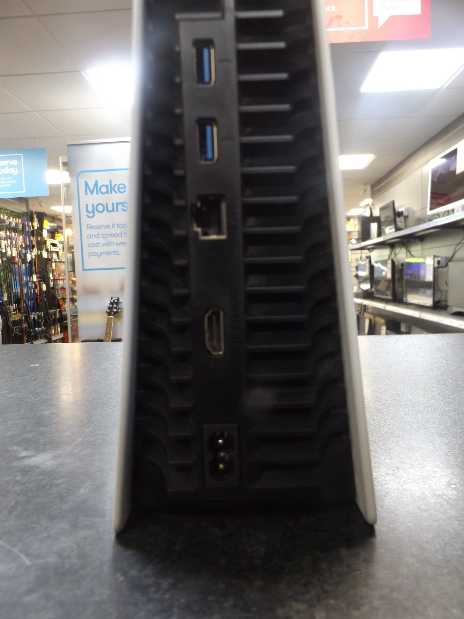 Ultra-High Speed SSD Maximize your play sessions with near instant load times for installed PS5 games. Integrated I/O The custom integration of the PS5 console's systems lets creators pull data from the SSD so quickly that they can design games in ways never before possible. Ray Tracing Immerse yourself in worlds with a new level of realism as rays of light are individually simulated, creating true-to-life shadows and reflections in supported PS5 games. 4K-TV Gaming Play your favourite PS5 games on your stunning 4K TV. Up to 120fps with 120Hz Output Enjoy smooth and fluid high frame rate gameplay at up to 120fps for compatible games, with support for 120Hz output on 4K displays. HDR Technology With an HDR TV, supported PS5 games display an unbelievably vibrant and lifelike range of colours. 8K Output PS5 consoles support 8K Output, so you can play games on your 4320p resolution display. Tempest 3D Audio Tech Immerse yourself in soundscapes where it feels as if the sound comes from every direction. Through your headphones or TV speakers your surroundings truly come alive with Tempest 3D Audio Tech in supported games Haptic Feedback Experience haptic feedback via the Dual Sense wireless controller in select PS5 titles and feel the effects and impact of your in-game actions through dynamic sensory feedback. Adaptive Triggers Get to grips with immersive adaptive triggers, featuring dynamic resistance levels which simulate the physical impact of in-game activities in select PS5 games. Delivered straight to your door or collect in our Hamilton Store today ! Please feel free to ask any questions on 01698427887