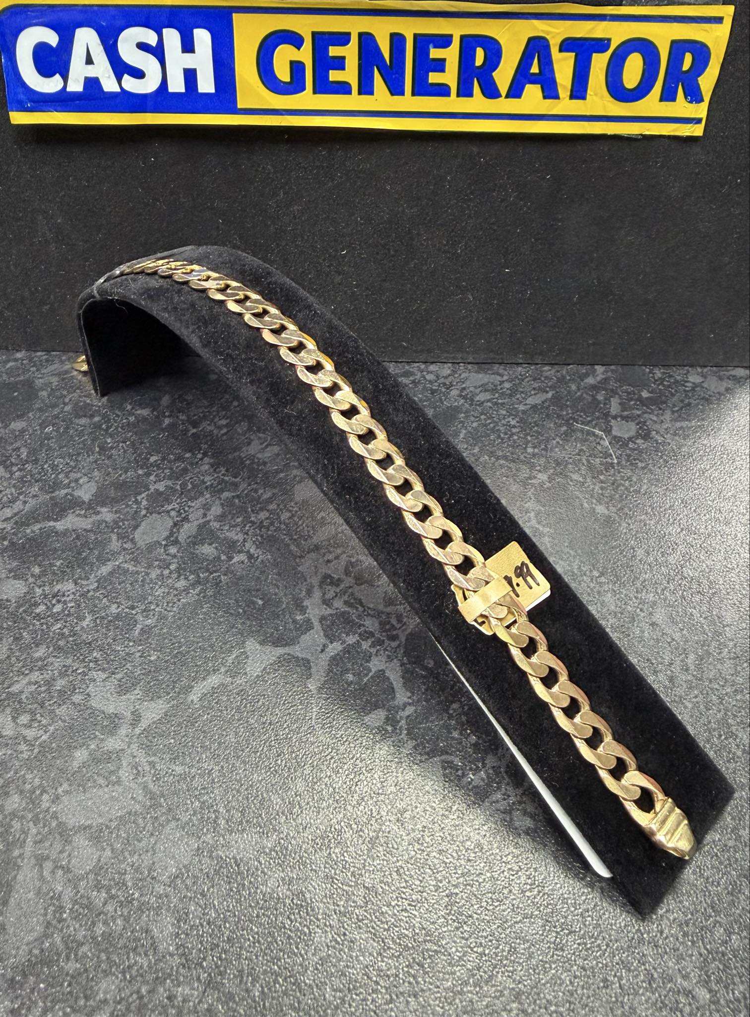 A 9ct gold curb bracelet that weighs 16.06g. Bracelet is in pristine condition, cleaned and polished.