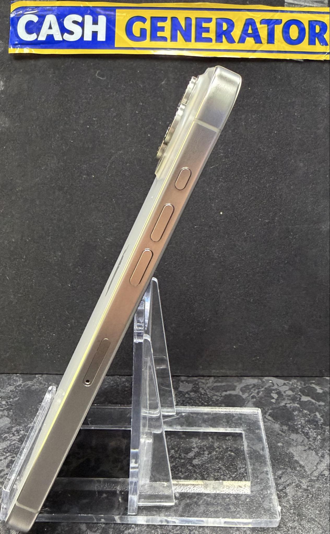 The Iphone 15 pro max has 256gb of storage, which comes in the natural titanium colour. The iPhone 15 pro max is in immaculate condition.
