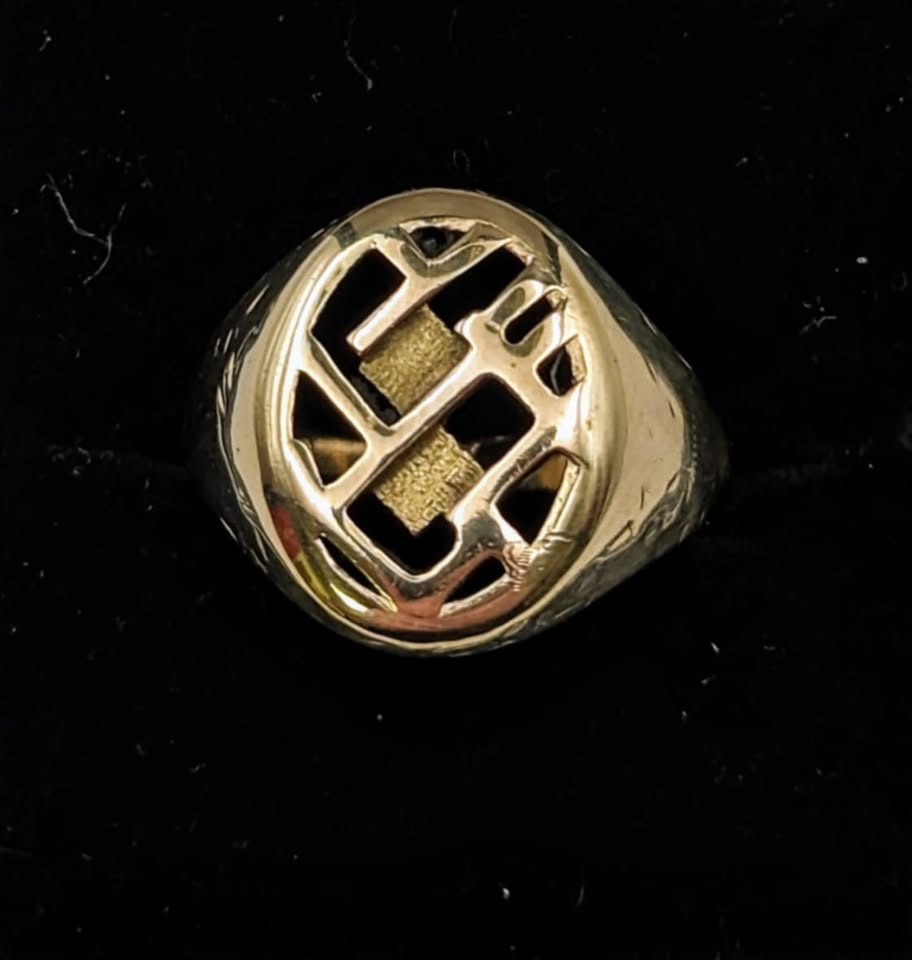 375 9CT YELLOW GOLD RING, UNIQUE LINE DESIGH, SIZE-T, 7.2G, Item is in wearable condition, however as a pre owned item it may have signs of use such as light marks, please see photos Harpurhey store