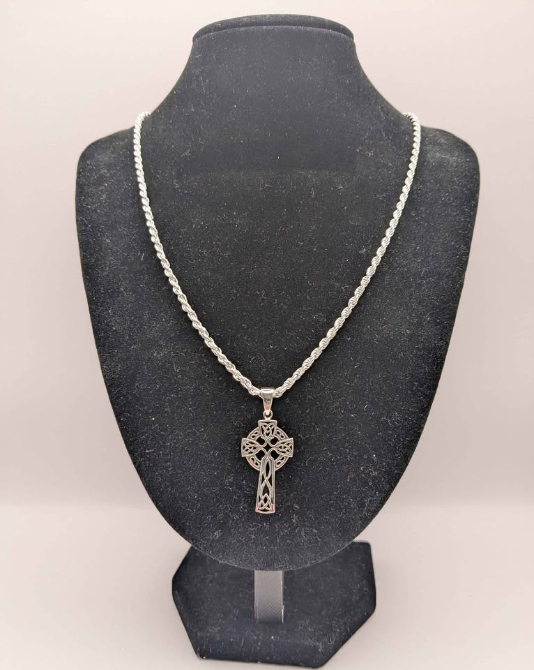 *BRAND NEW* 925 STERLING SILVER CHAIN WITH CELTIC CROSS 22" 19.0G, BOXED