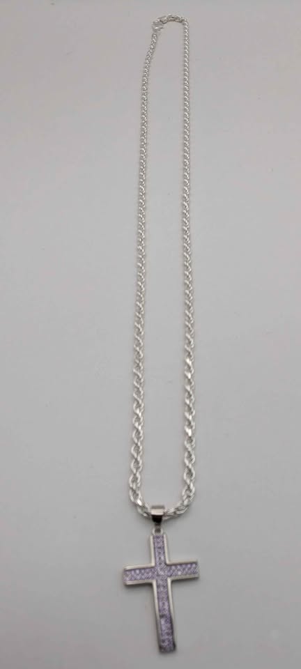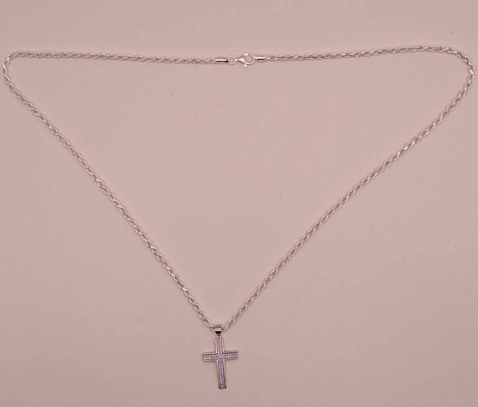 *BRAND NEW* 925 STERLING SILVER CHAIN WITH LILAC CROSS 22" 18.8G, BOXED