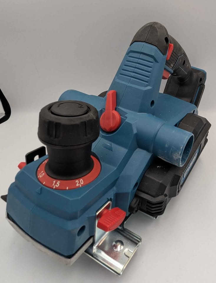 Durable Erbauer EXT 18V planer built to handle demanding planing tasks easily and efficiently. Features a powerful V2 brushless motor to ensure effortless material removal and smooth operation. Aluminium front and back shoe provides stability and glides smoothly across surfaces, and the calibrated depth adjustment system delivers accurate, consistent cuts. Designed for user convenience, the planer features a built-in kickstand to prevent tool damage, and on-board wrench storage for easy access when adjustments are needed. Precision-machined groove in front shoe allows for effortless chamfering and edge routing, enhancing tool versatility. Includes dust extraction port for maintaining a clean workspace, and ergonomic handle for comfort during extended use.