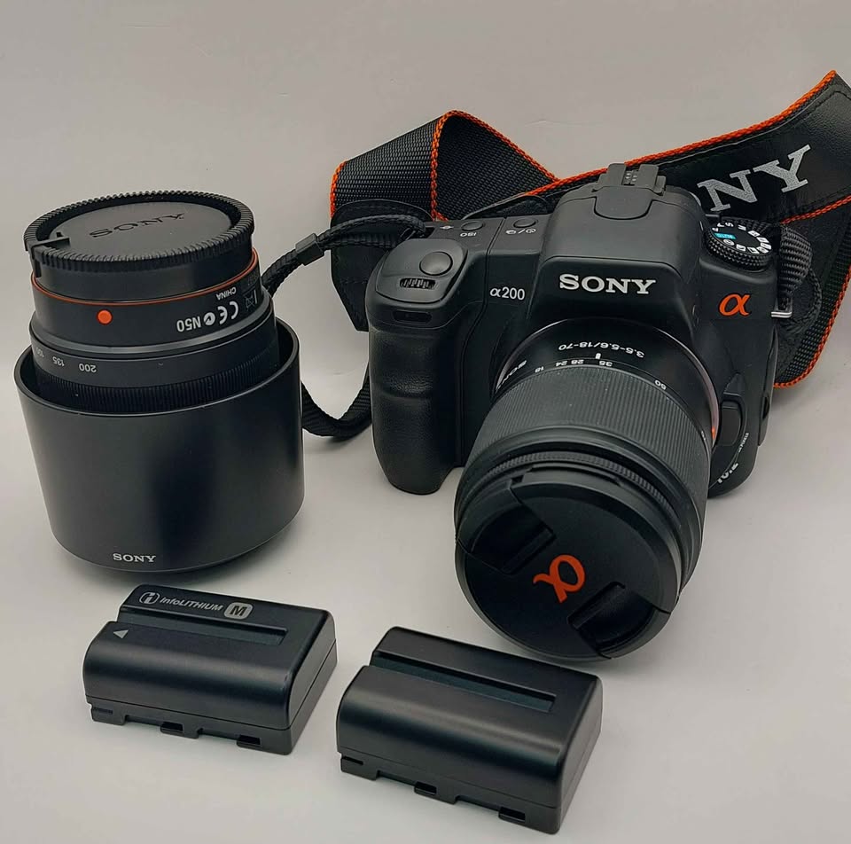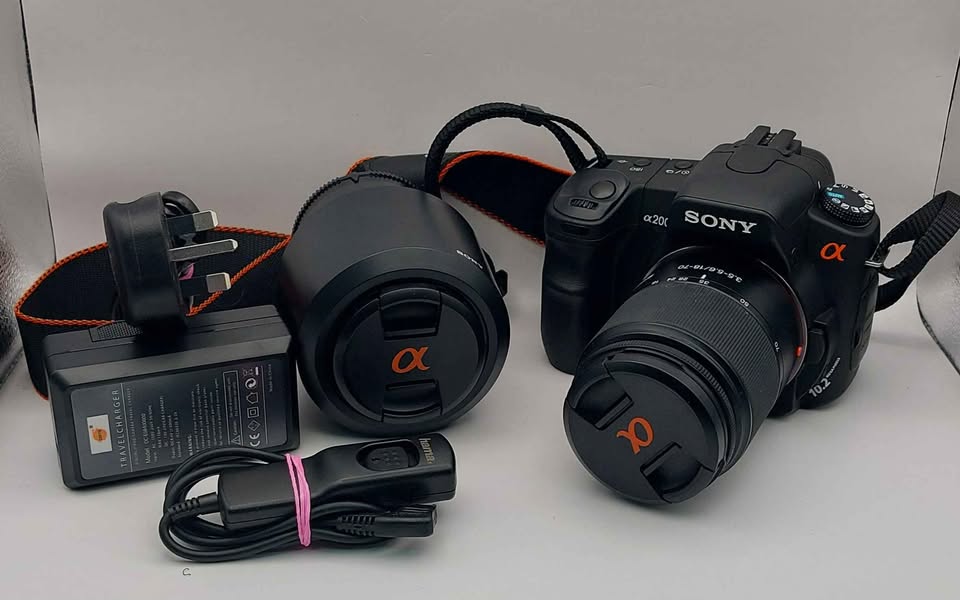 Sony alpha A200/DT 18-70-3.5-5.6 camera & Sony DT 4-5.6 55-200 with charger and carry case