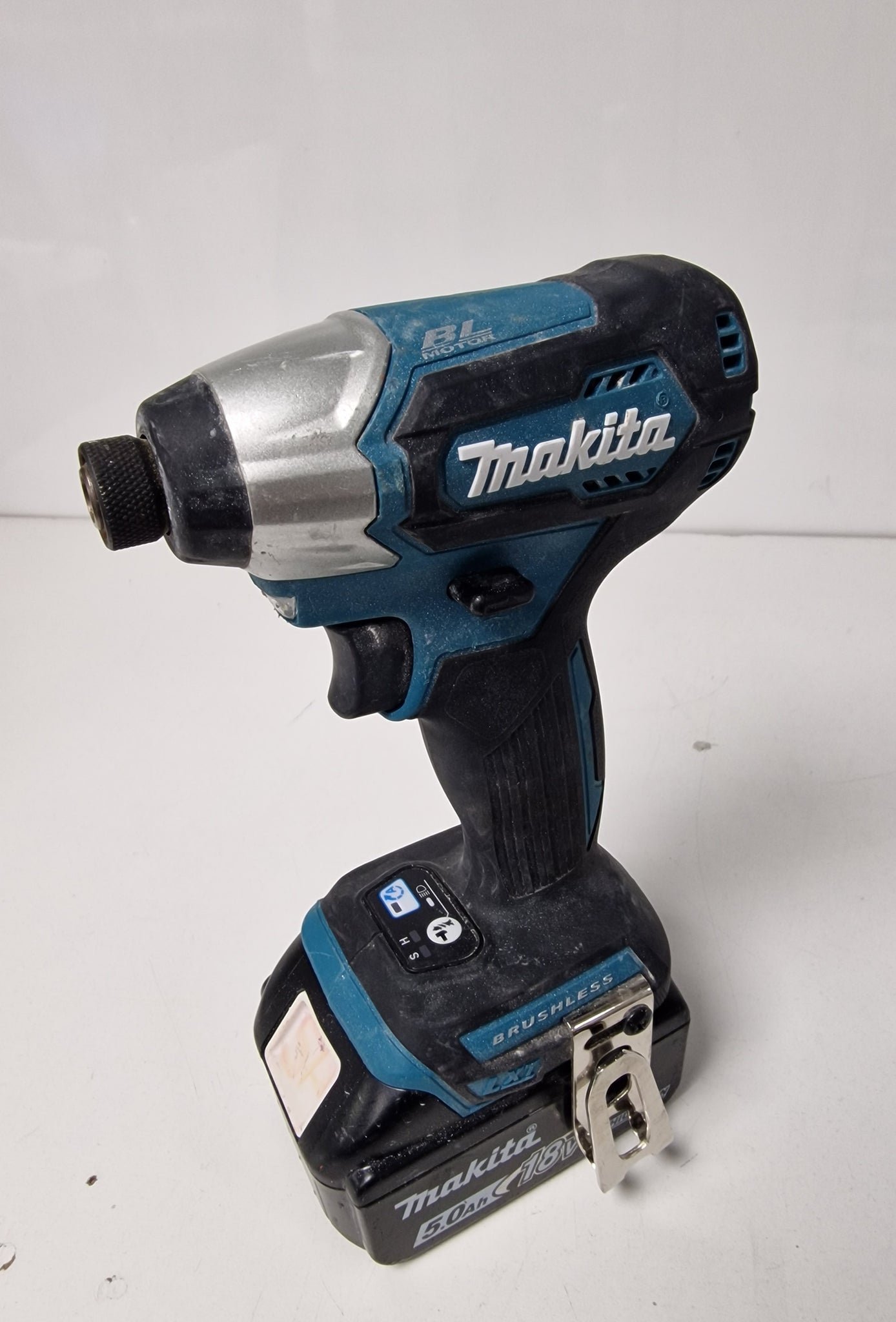 The Makita DTD155 is a cordless, Brushless Impact Driver powered by 18v Li-ion battery and has been developed as an 18 volt version of the TD111D. It features Makita's new impact mode, "A-Mode" aka "Assist Mode" which helps to eliminate "screw cam-out" and "cross threading“ by driving at low speed until the start of tightening. FEATURES 3 operating modes allow a wide range of applications: 2 speed levels + "A Mode" "Assist Mode": Assisted screwing with push button, soft & slow start -> automatic acceleration -> tightening with maximum speed BL Motor without carbon brushes: no maintenance and low energy consumption, therefore longer battery life Enhanced moisture and dust protection with the XPT system (eXtreme Protection Technology) Ergonomic design for optimum hand control Ergonomic handle with soft coating for high working comfort One-touch bit installation with 1/4" hex chuck Powerful double LED lighting Electric brake Variable speed control by trigger Forward and reverse rotation