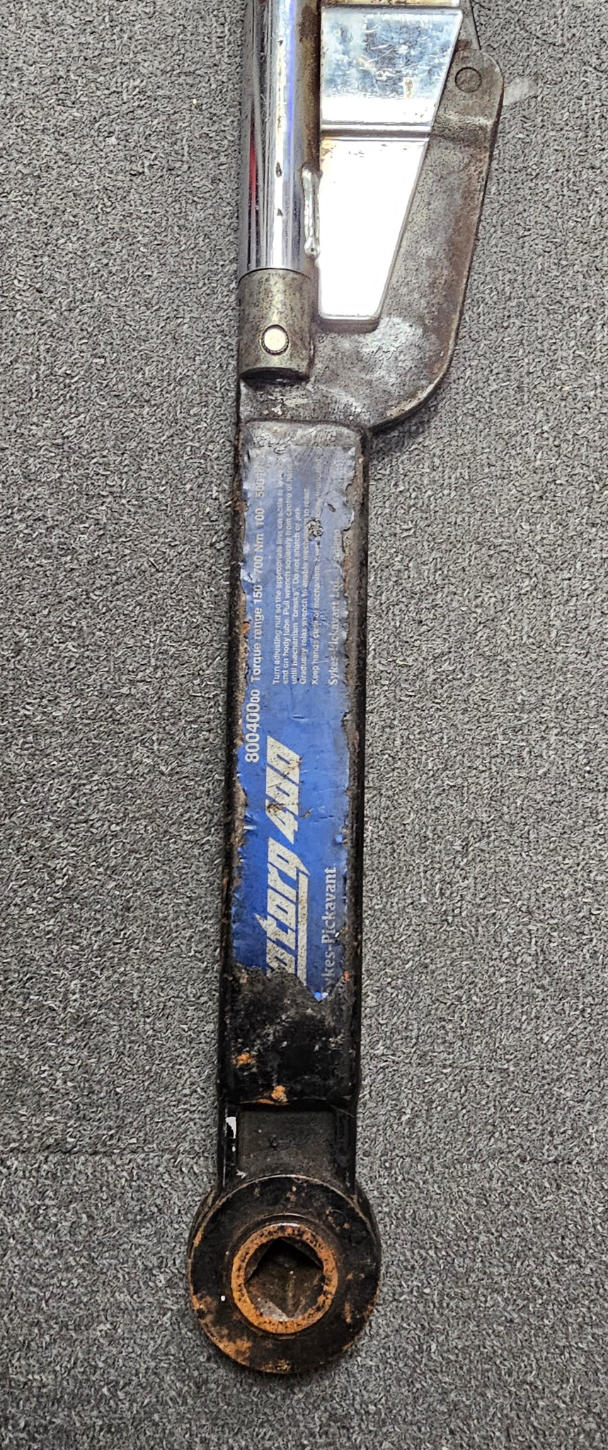 Sykes Pickavant Motorq 400 Heavy Duty dr Torque Wrench 150-700Nm: Part no:80040000: ‘Motorq’ Heavy Duty Torque Wrench Range: For heavy-duty applications: ‘Break Back’ type action provides an unmistakable signal that can be seen and felt when the set torque is reached and reduces the possibility of over torquing: Robust construction: Accurate to +/- 4% of reading: Manufactured to ISO9000:2000 standard: 36 tooth ratchet head with push-thru square drive: Graduated scale on handle for easy adjustment: