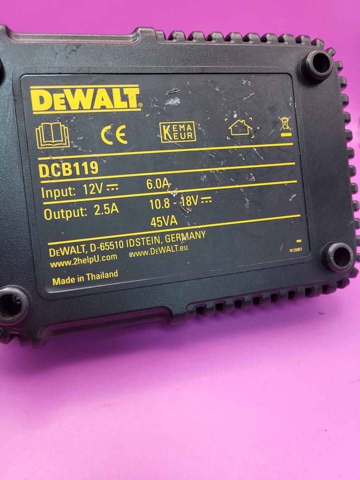 The DCB119 Li-ion battery charger from DeWalt not only charges 12V & 20V XR Li-Ion batteries quickly and easily using your in-car 12V socket, it also diagnoses any potential problems with such batteries, informing the user of issues such as power problems, overheating or cold batteries. The DCB119 also shuts off automatically, protecting the health of your battery, meaning this charger not only informs the user that a battery may be coming to the end of it's lifespan, it extends the lifespan too. The DCB119 from DeWalt, a great choice for those who need power anywhere, any time.