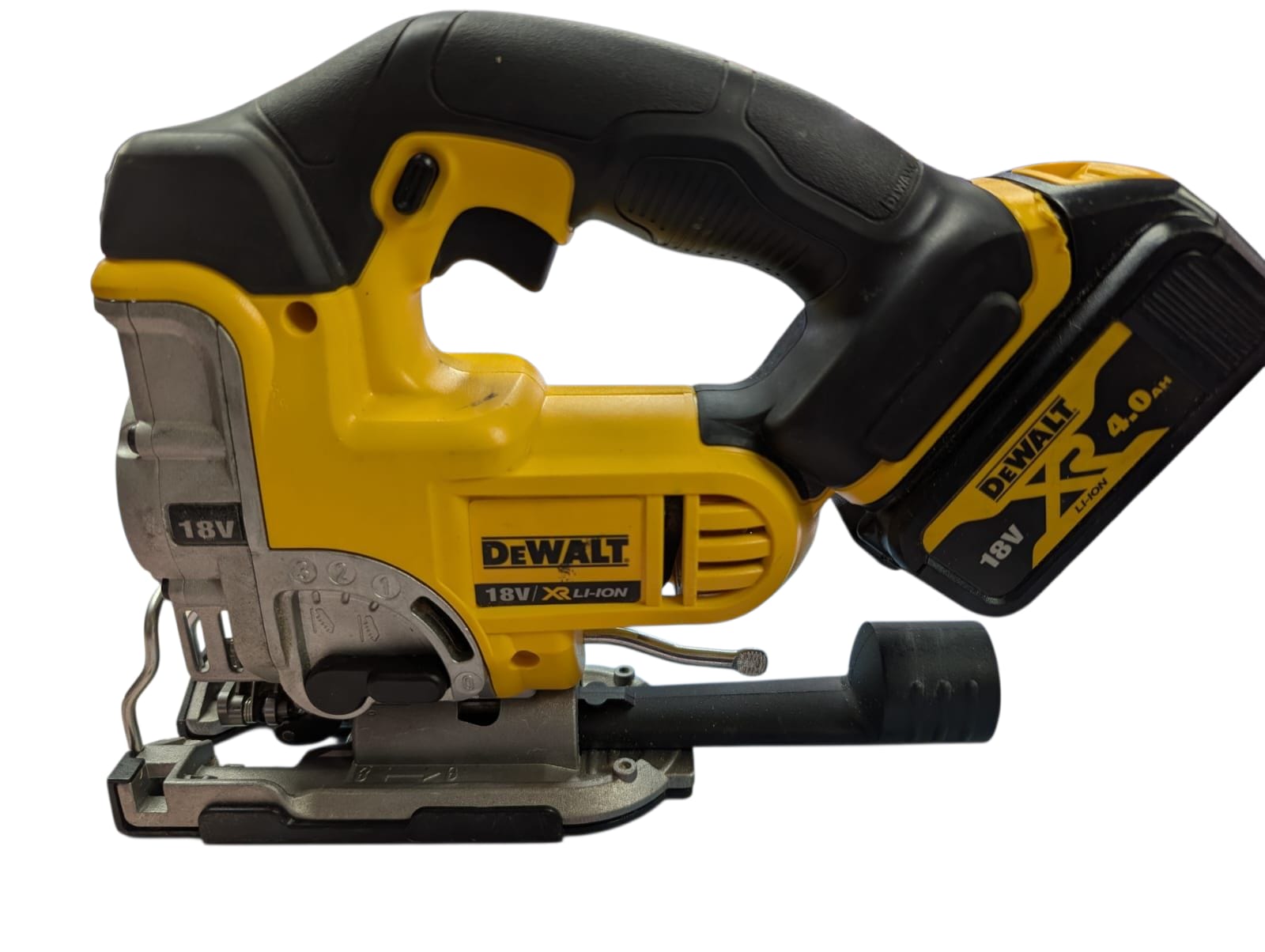 HERE WE HAVE A DEWALT DSS331 CORDLESS JIGSAW WITH ONE 4.0AH BATTERY. THIS COMES UNBOXED WITH A LITTLE COSMETIC WEAR. ** (DOES NOT INCLUDE CHARGER) ** FOR ANY QUERIES PLEASE CALL OUR PRESTON STORE DIRECT MON-SAT 01772 204889
