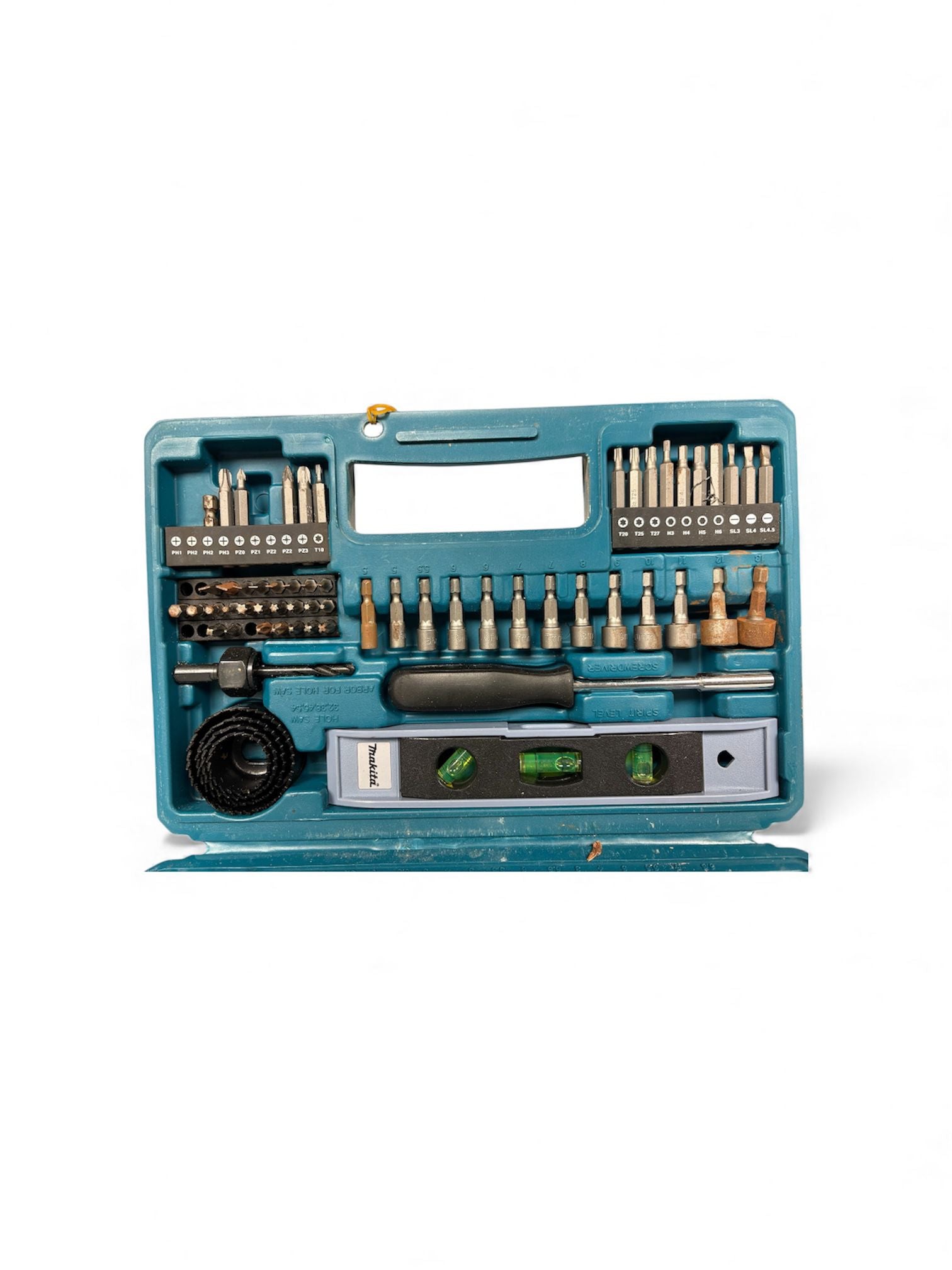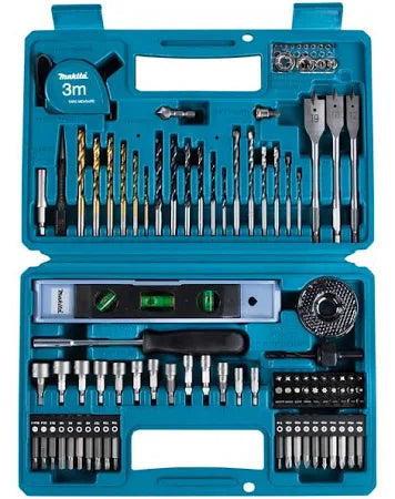 The Makita E-10730 102 Piece Drill & Screwdriver Bit Set from ITS is a fantastic collection of the most commonly used accessories with a Combi Drill, Impact Driver or Screwdriver. This is a handy addition to any toolkit as you are getting a wide variety of bits, and all of these are constructed with the high-quality and durability that Makita are known for. This set includes 50 screwdriver bits, 21 drill bits, 13 1/4in sockets, and 18 miscellaneous items including popular hand tools such as a spirit level and a tape measure. The accessories are stored neatly in a compact, plastic carry case. This can then be easily stored in a cupboard, or in the back of a van, and can be easily transported to any job – thanks to the moulded handle on top.