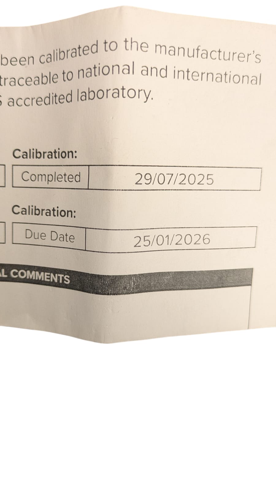 Next Calibration due 25/01/26. Has Certificate of previous calibration.