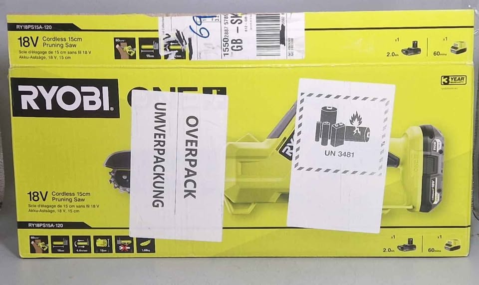 Ryobi 18V RY18PS15A-120 Cordless Pruning Saw + Battery (1 x 2.0Ah) + Charger perfect working condition, perfect physical condition, opened to test