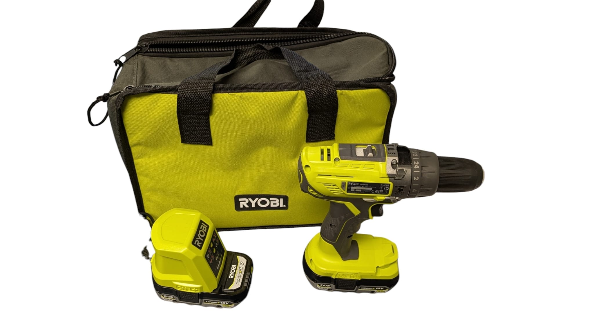 Experience the flexibility and power of the Ryobi ONE 18V Cordless Combi Drill, a versatile tool that is essential for any DIY enthusiast or professional tradesperson. This drill set comes equipped with two 1.5Ah Li-ion batteries, ensuring you can tackle multiple tasks without the hassle of recharging. With a maximum torque of 24 Nm and a speed range of 0 to 500/0 to 1800 rpm, it's designed to handle a variety of drilling tasks with ease.nnThe drill features a keyless chuck for quick bit changes and is part of the Ryobi ONE system, which means it's compatible with a wide range of Ryobi batteries and chargers. Its robust brushed motor is engineered for longevity, while the sleek black and yellow design adds a touch of style to your toolkit. The included batteries and the convenience of cordless technology make this drill an efficient choice for your projects.n2 years guarantee.nBrand new, opened, never been used.nComes with x 2 batteries, charger and carry case.
