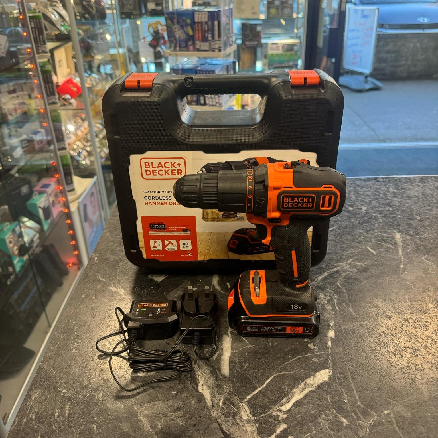 BLACK+DECKER BCD700S 18V Cordless 2 Gear Hammer Drill This has been fully tested and is in good working order. This is a pre-owned item and does have a few marks/scratches etc however these do not affect the performance. 1.5AH battery, charger & case included. Will be very well wrapped for delivery! Free UK Delivery Any item over £50 will be sent out Royal Mail Special Delivery or Fedex (depending on size and weight of package) for next working day delivery Any items under £50 will be sent out by Royal Mail 2nd Class for delivery between 3 and 5 working days All orders made before 11AM will be sent out the same working day Please note that deliveries to Ireland, Highland of Scotland and the Isles may take longer to arrive.