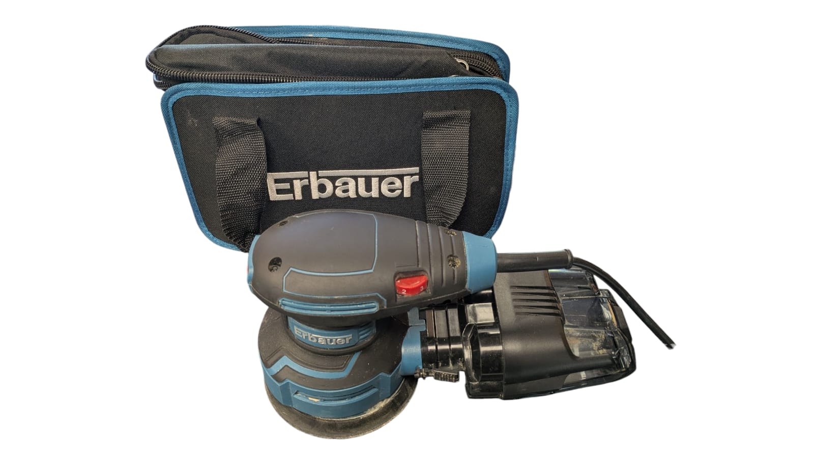 Erbauer 400W 220-240V Corded Random Orbital Sander ERO400 In good Condition As pictured with bag and accessories shown The Erbauer 400W Corded Random Orbital Sander ERO400 is a versatile power tool designed for DIY and workshop tasks. With a 2.5mm orbit diameter and a no load speed of 14000opm, this sander provides efficient and effective sanding results. The corded electric power source ensures consistent and reliable performance, while the dust extraction facility keeps your workspace clean. The wing nut paper fastening type and rocker switch make operation easy and convenient, making this orbital sander a reliable choice for various sanding projects around the home.