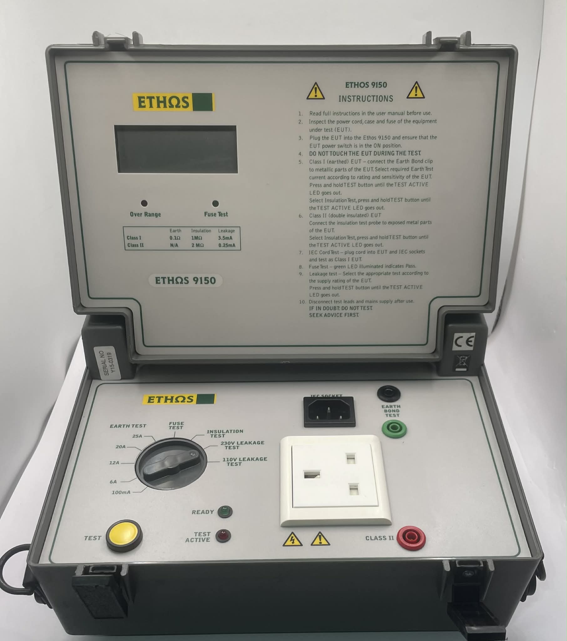 Ethos 9150 Portable Appliance Tester Comes with all the necessary wires. Dual voltage compatibility: Suitable for both 110V and 230V. Somes cosmetic wear. Good working condition.
