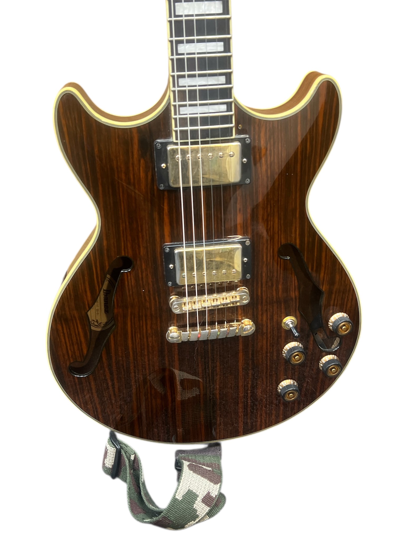 AM93ME The AM was released by Ibanez for the first time in the early ”80s. Though smaller in size than other semi-hollow bodies, this guitar provides warm, punchy tone and abundant sustain. It offers the added benefit being compact enough that players more accustomed to a solid body electric will feel right at home on this popular Artcore model. Artcore Expressionist – For more than a decade, Ibanez has continued to energize the hollow-body market with wide range of designs including everything from rockin’ semi-hollow hybrids to straight-up traditional jazz-boxes. The Artcore Expressionist line established yet another chapter in the Artcore story. The Expressionist difference? Jazz fans will recognize the Ibanez original Super 58, the preferred pickup of George Benson, Pat Metheny and John Scofield on their own Signature models. A favorite among jazz players, but as funk guitarist Eric Krasno has been proving, the Super 58s perform well in a variety of situations. Warmth, balanced articulation, and excellent response are defining characteristic the Super 58 pickups.Product Features 3pc Nyatoh/Maple neck The 3pc Nyatoh/Maple Neck provides a rich mid-low end and great resonance. Macassar Ebony fretboard Macassar Ebony produces tight lows and mid range along with strong attack in the highs and quick response with rich sustain. Medium frets Medium sized frets enhance the accuracy of your notes. Macassar Ebony top / Macassar Ebony back and sides Macassar Ebony produces a tight low and mid range with a strong attack in the high end. Macassar Ebony also features a quick response and rich sustain. Super 58 pickups Super 58 pickups feature moderate output and vintage tone. Gibraltar Performer bridge The Gibraltar Performer bridge provides rich sustain and tuning stability. The low-positioned saddles promise comfortable playability. Quik Change III tailpiece The Quik Change III tailpiece enables faster and easier string changing.
