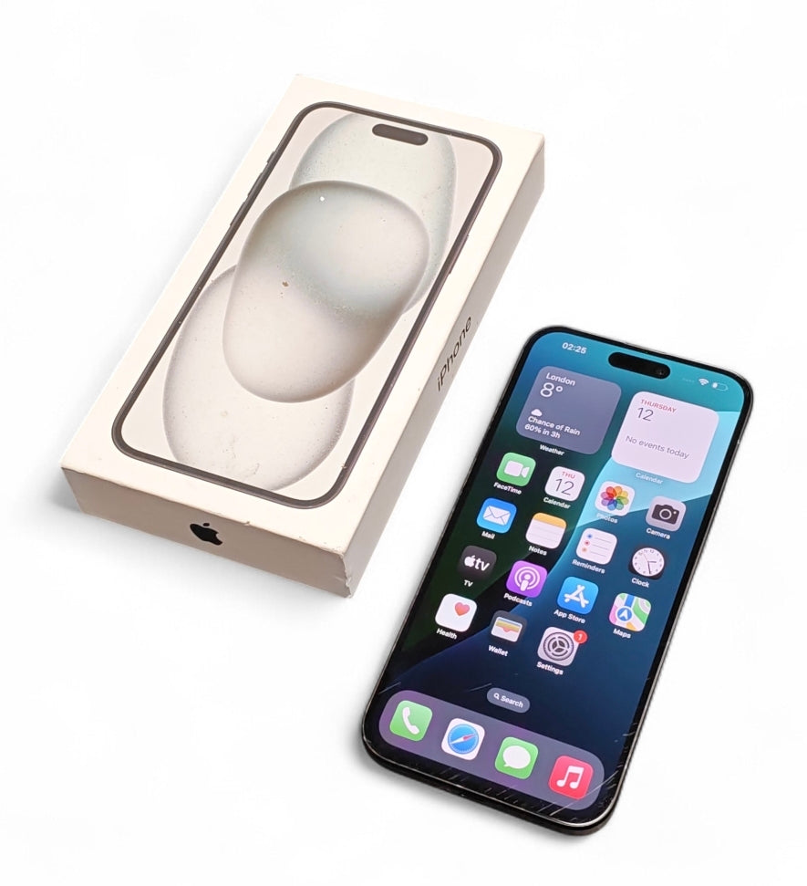 The Apple iPhone 15 Plus is a large-screen smartphone featuring a 6.7-inch Super Retina XDR display and exceptional battery life, often cited as one of the longest-lasting in the iPhone lineup. Display: 6.7-inch OLED screen with Dynamic Island technology and a peak outdoor brightness of 2,000 nits. Processor: Powered by the A16 Bionic chip, which features a 6-core CPU and 5-core GPU. Camera System: Dual-lens setup with a 48MP Main camera and a 12MP Ultra Wide lens. It supports 2x optical-quality Telephoto zoom. Battery: Offers up to 26 hours of video playback and up to 100 hours of audio playback. Charging: Features a USB-C connector for charging and data transfer, replacing the previous Lightning port.