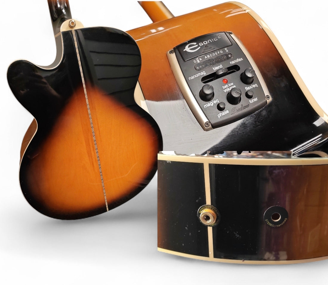The Epiphone EJ-200SCE (often labeled with /VS for Vintage Sunburst finish) is a super jumbo acoustic-electric guitar that pays tribute to the classic Gibson SJ-200, known for its grand appearance and powerful, balanced tone. It is a popular, good value option for singer-songwriters and rhythm guitarists. Sound Quality: Customers describe the acoustic tone as rich and full-bodied, offering a "great sound" for the price. When amplified, the dual pickup system (on certain versions) provides a wide range of tones, blending warmth and attack effectively. Playability: The guitar generally receives positive marks for its playability, with many noting a nice, low action right out of the box. Value: It is widely considered an excellent value for money, offering many professional features for its price point.
