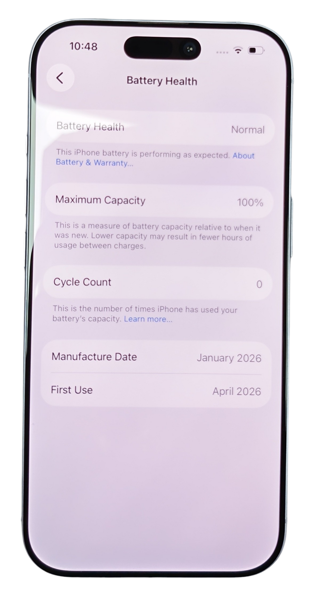 Comes boxed in immaculate condition with charging wire. Seal was broken in store. 100% battery capacity and charge cycle count is 0.