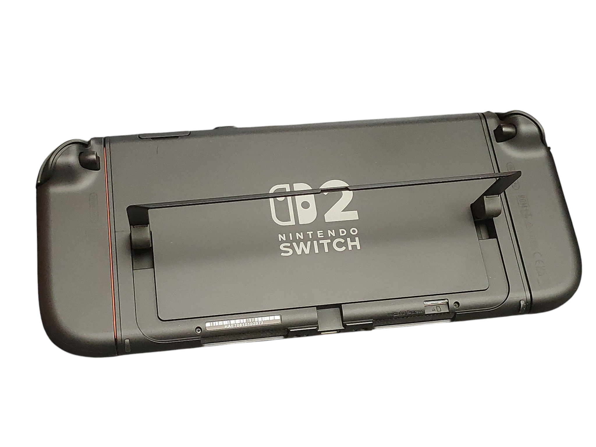 The Nintendo Switch 2 is a next-generation hybrid console featuring a larger 7.9-inch LCD screen, improved performance, and magnetic Joy-Con 2 controllers. It supports 4K resolution when docked, includes 256GB internal storage with faster microSD Express support, and is backwards compatible with most original Switch games. Display: 7.9-inch LCD screen, offering a larger visual area compared to previous models. Performance: Enhanced processing power allowing for better visuals, improved textures, and consistent frame rates. Dock: The new dock supports 4K resolution at 60 fps for TV play and includes a built-in fan for cooling. Joy-Con 2 Controllers: Redesigned with stronger magnets for attachment, larger buttons/joysticks, and an optical sensor for mouse-like functionality. Storage & Connectivity: 256GB internal storage (up from 32GB) and a new microSD Express slot for faster loading. USB-C ports are located on both the top and bottom of the unit. Audio & Chat: Built-in microphone and support for a new GameChat feature to converse and share screens. Backwards Compatibility: Plays both physical and digital original Nintendo Switch games.