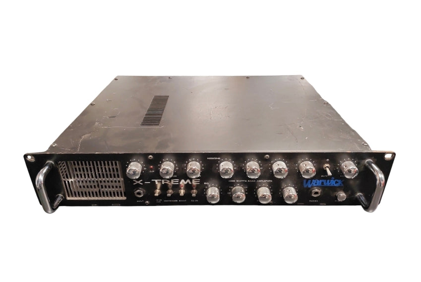 The Warwick X-Treme 10.1 is a discontinued 1000-watt professional bass amplifier head known for its massive power reserves and versatile tone-shaping capabilities. While it is no longer in production, it remains a sought-after unit on the used market for players needing clean, high-headroom performance. Power Output: 1000 Watts at 4 ohms (MOSFET power). Preamp: Features a Class A preamplifier circuit for warmth and richness. Weight: Roughly 19 kg (approx. 42 lbs), reflecting its heavy-duty build. Form Factor: 19" rack-mount design occupying 2U of rack space.
