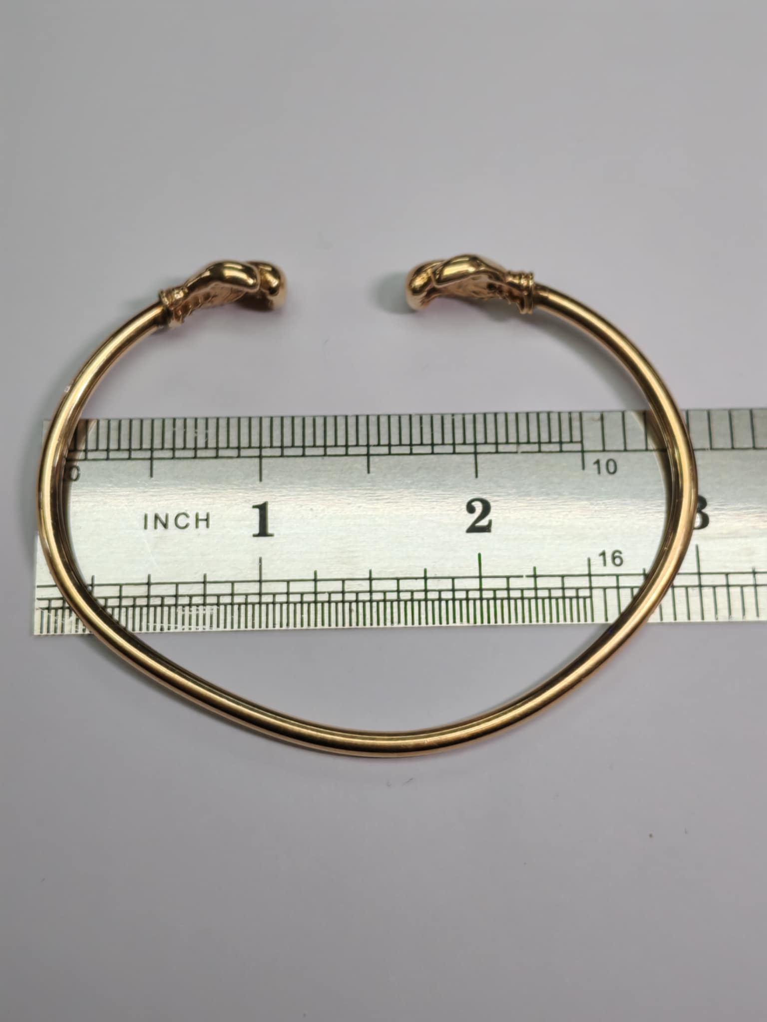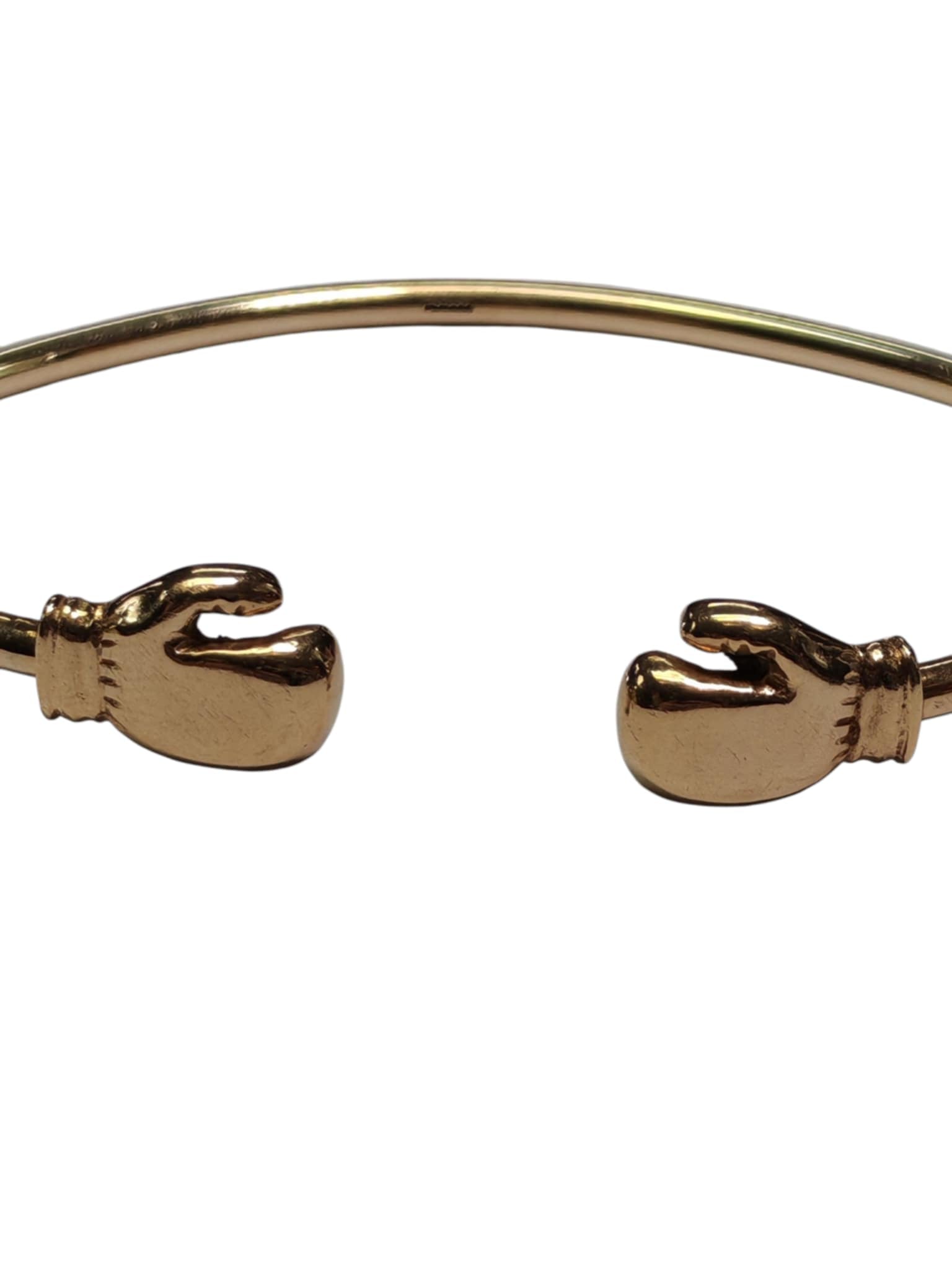 HERE WE HAVE A 9CT GOLD BOXING GLOVE BANGLE. THIS IS HALLMARKED 375 AND WEIGHS 19.28G THERE IS GENERAL WEAR/MISSHAPE FROM GENERAL WEAR. ***** FOR ANY QUERIES PLEASE CONTACT OUR PRESTON STORE DIRECTLY MON-SAT ON 01772 204 889