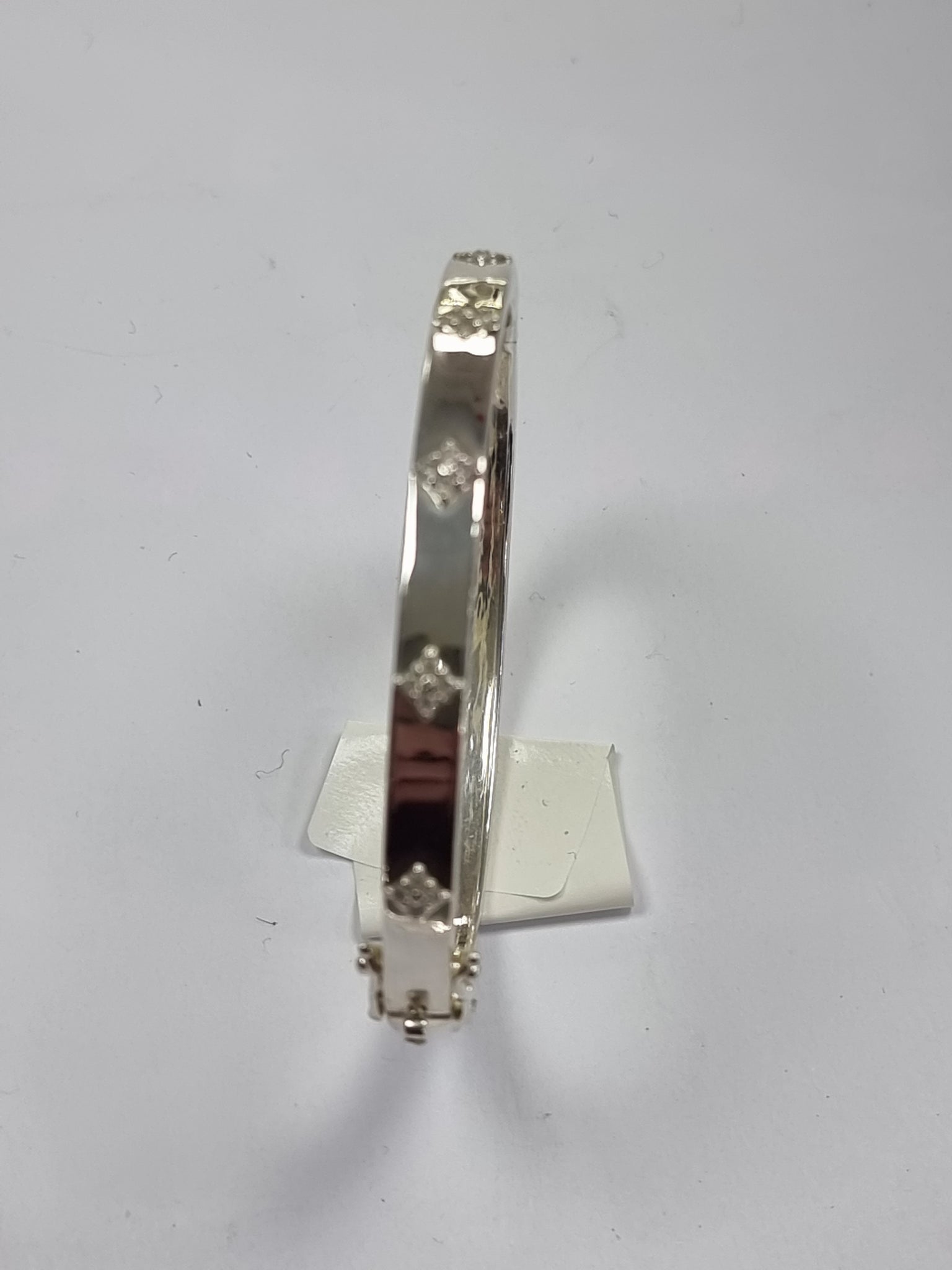 A beautiful bangle set with diamonds across the top with a solid catch weighing 13.69 grams